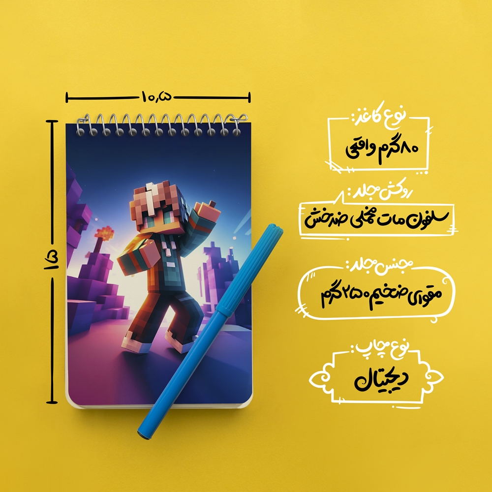 برند خندالو در زمینه تولید انواع دفاتر فانتزی و تحصیلی فعالیت میکند که به دلیل جذابیت ظاهری و طرح های متنوع طرفداران زیادی دارد. دفتر یادداشت خندالو طرح ماینکرافت (Minecraft) محصولی مناسب برای همه عاشقان لوازم التحریر است و همچنین همه کسانی که بنا به موقعیت تحصیل یا شغلشان با دفتر و نوشت افزار زیاد سر و کار دارند. در تولید دفتر یادداشت خندالو طرح ماینکرافت (Minecraft) از نوع صحافی فنر مارپیچ استفاده شده که در این نوع صحافی برگه‌ها به راحتی چرخیده و یا بیرون آورده می شوند.