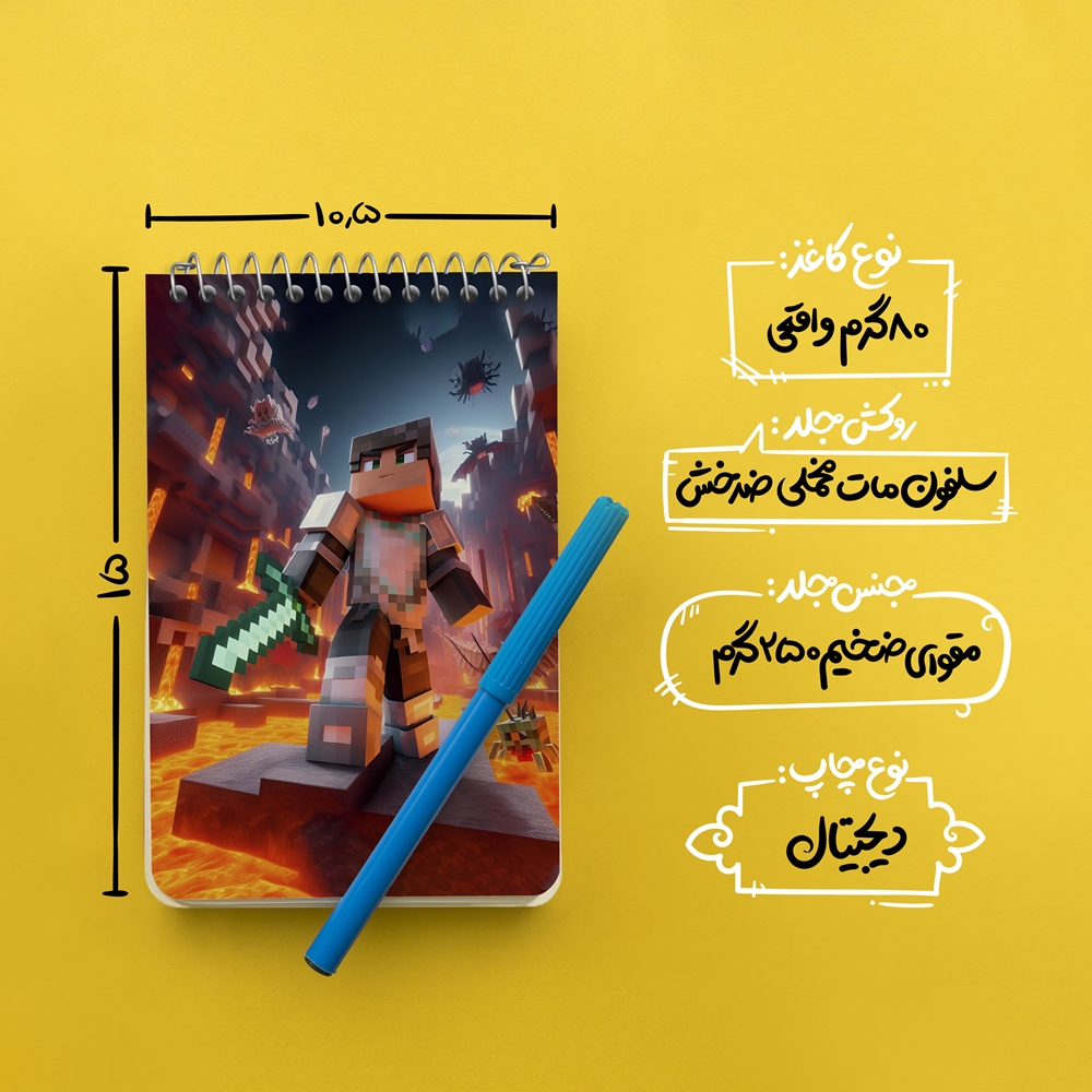 برند خندالو در زمینه تولید انواع دفاتر فانتزی و تحصیلی فعالیت میکند که به دلیل جذابیت ظاهری و طرح های متنوع طرفداران زیادی دارد. دفتر یادداشت خندالو طرح ماینکرافت (Minecraft) محصولی مناسب برای همه عاشقان لوازم التحریر است و همچنین همه کسانی که بنا به موقعیت تحصیل یا شغلشان با دفتر و نوشت افزار زیاد سر و کار دارند. در تولید دفتر یادداشت خندالو طرح ماینکرافت (Minecraft) از نوع صحافی فنر مارپیچ استفاده شده که در این نوع صحافی برگه‌ها به راحتی چرخیده و یا بیرون آورده می شوند.