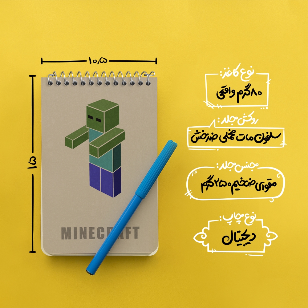 برند خندالو در زمینه تولید انواع دفاتر فانتزی و تحصیلی فعالیت میکند که به دلیل جذابیت ظاهری و طرح های متنوع طرفداران زیادی دارد. دفتر یادداشت خندالو طرح ماینکرافت (Minecraft) محصولی مناسب برای همه عاشقان لوازم التحریر است و همچنین همه کسانی که بنا به موقعیت تحصیل یا شغلشان با دفتر و نوشت افزار زیاد سر و کار دارند. در تولید دفتر یادداشت خندالو طرح ماینکرافت (Minecraft) از نوع صحافی فنر مارپیچ استفاده شده که در این نوع صحافی برگه‌ها به راحتی چرخیده و یا بیرون آورده می شوند.