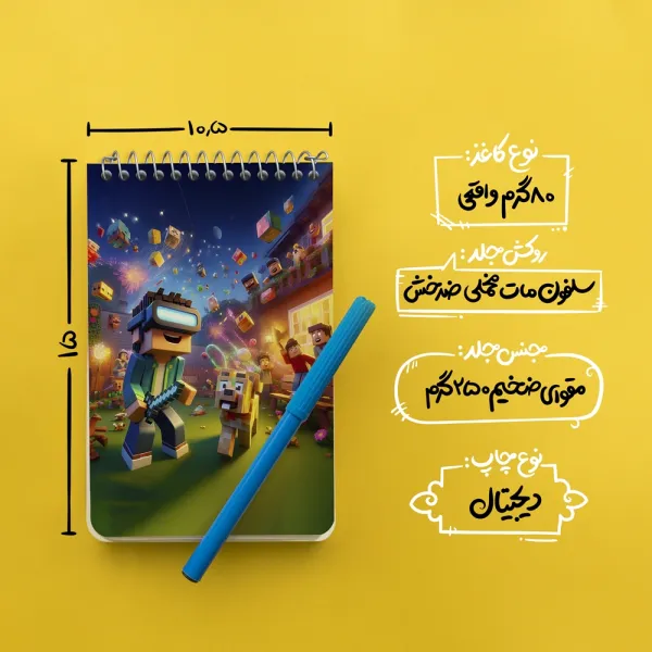 برند خندالو در زمینه تولید انواع دفاتر فانتزی و تحصیلی فعالیت میکند که به دلیل جذابیت ظاهری و طرح های متنوع طرفداران زیادی دارد. دفتر یادداشت خندالو طرح ماینکرافت (Minecraft) محصولی مناسب برای همه عاشقان لوازم التحریر است و همچنین همه کسانی که بنا به موقعیت تحصیل یا شغلشان با دفتر و نوشت افزار زیاد سر و کار دارند. در تولید دفتر یادداشت خندالو طرح ماینکرافت (Minecraft) از نوع صحافی فنر مارپیچ استفاده شده که در این نوع صحافی برگه‌ها به راحتی چرخیده و یا بیرون آورده می شوند.