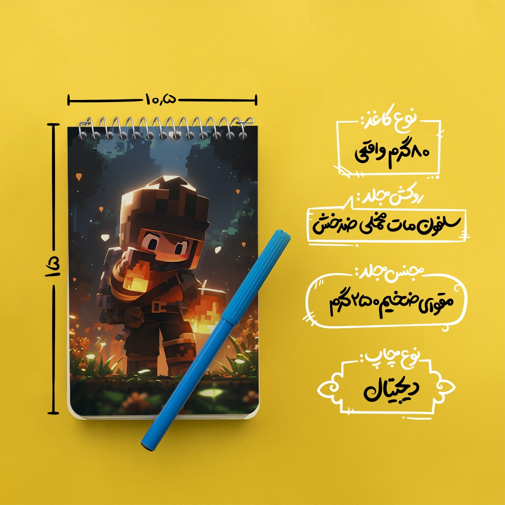 برند خندالو در زمینه تولید انواع دفاتر فانتزی و تحصیلی فعالیت میکند که به دلیل جذابیت ظاهری و طرح های متنوع طرفداران زیادی دارد. دفتر یادداشت خندالو طرح ماینکرافت (Minecraft) محصولی مناسب برای همه عاشقان لوازم التحریر است و همچنین همه کسانی که بنا به موقعیت تحصیل یا شغلشان با دفتر و نوشت افزار زیاد سر و کار دارند. در تولید دفتر یادداشت خندالو طرح ماینکرافت (Minecraft) از نوع صحافی فنر مارپیچ استفاده شده که در این نوع صحافی برگه‌ها به راحتی چرخیده و یا بیرون آورده می شوند.