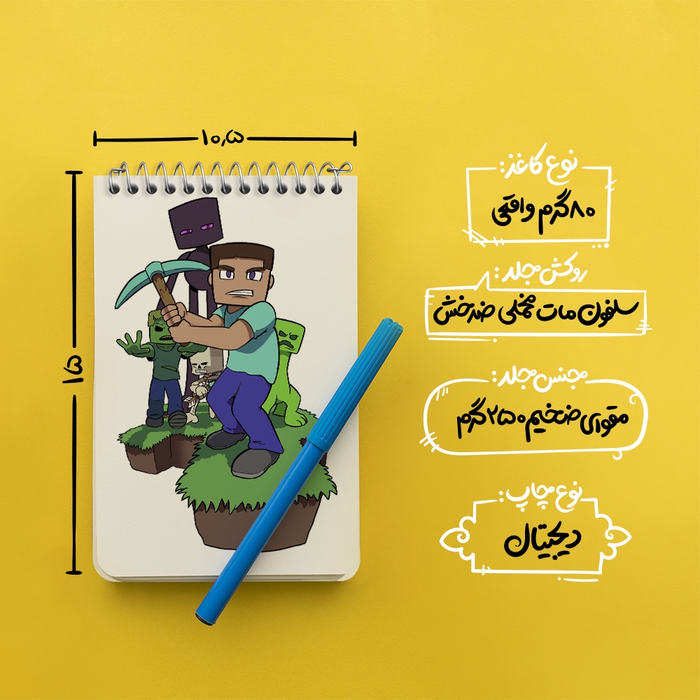 برند خندالو در زمینه تولید انواع دفاتر فانتزی و تحصیلی فعالیت میکند که به دلیل جذابیت ظاهری و طرح های متنوع طرفداران زیادی دارد. دفتر یادداشت خندالو طرح ماینکرافت (Minecraft) محصولی مناسب برای همه عاشقان لوازم التحریر است و همچنین همه کسانی که بنا به موقعیت تحصیل یا شغلشان با دفتر و نوشت افزار زیاد سر و کار دارند. در تولید دفتر یادداشت خندالو طرح ماینکرافت (Minecraft) از نوع صحافی فنر مارپیچ استفاده شده که در این نوع صحافی برگه‌ها به راحتی چرخیده و یا بیرون آورده می شوند.