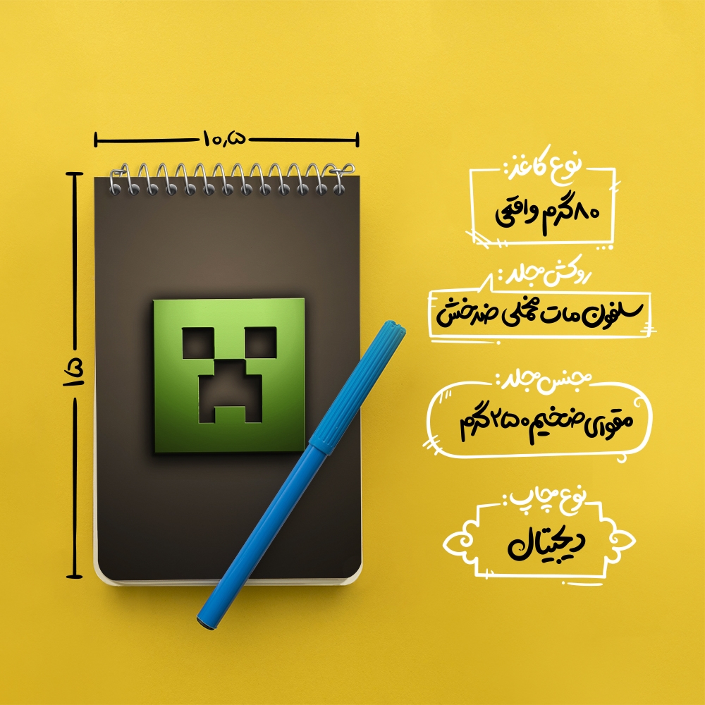برند خندالو در زمینه تولید انواع دفاتر فانتزی و تحصیلی فعالیت میکند که به دلیل جذابیت ظاهری و طرح های متنوع طرفداران زیادی دارد. دفتر یادداشت خندالو طرح ماینکرافت (Minecraft) محصولی مناسب برای همه عاشقان لوازم التحریر است و همچنین همه کسانی که بنا به موقعیت تحصیل یا شغلشان با دفتر و نوشت افزار زیاد سر و کار دارند. در تولید دفتر یادداشت خندالو طرح ماینکرافت (Minecraft) از نوع صحافی فنر مارپیچ استفاده شده که در این نوع صحافی برگه‌ها به راحتی چرخیده و یا بیرون آورده می شوند.