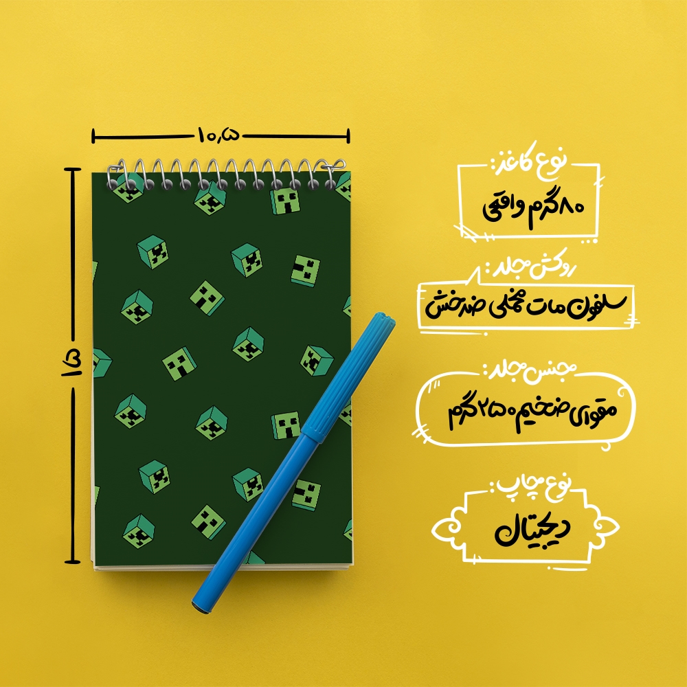 برند خندالو در زمینه تولید انواع دفاتر فانتزی و تحصیلی فعالیت میکند که به دلیل جذابیت ظاهری و طرح های متنوع طرفداران زیادی دارد. دفتر یادداشت خندالو طرح ماینکرافت (Minecraft) محصولی مناسب برای همه عاشقان لوازم التحریر است و همچنین همه کسانی که بنا به موقعیت تحصیل یا شغلشان با دفتر و نوشت افزار زیاد سر و کار دارند. در تولید دفتر یادداشت خندالو طرح ماینکرافت (Minecraft) از نوع صحافی فنر مارپیچ استفاده شده که در این نوع صحافی برگه‌ها به راحتی چرخیده و یا بیرون آورده می شوند.