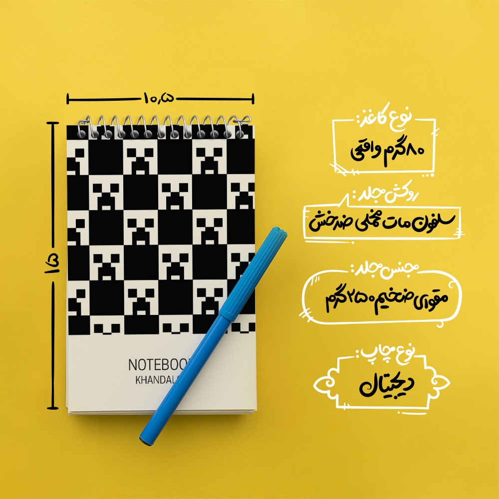 برند خندالو در زمینه تولید انواع دفاتر فانتزی و تحصیلی فعالیت میکند که به دلیل جذابیت ظاهری و طرح های متنوع طرفداران زیادی دارد. دفتر یادداشت خندالو طرح ماینکرافت (Minecraft) محصولی مناسب برای همه عاشقان لوازم التحریر است و همچنین همه کسانی که بنا به موقعیت تحصیل یا شغلشان با دفتر و نوشت افزار زیاد سر و کار دارند. در تولید دفتر یادداشت خندالو طرح ماینکرافت (Minecraft) از نوع صحافی فنر مارپیچ استفاده شده که در این نوع صحافی برگه‌ها به راحتی چرخیده و یا بیرون آورده می شوند.