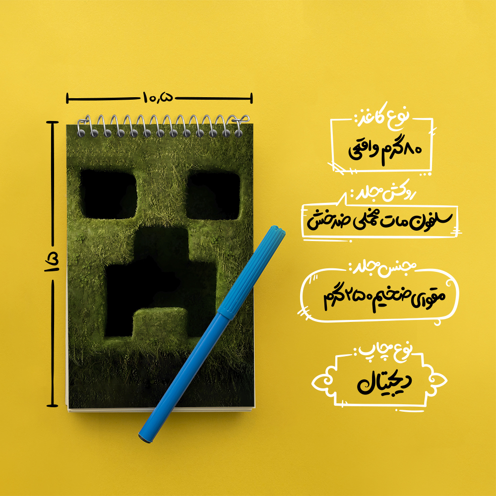 برند خندالو در زمینه تولید انواع دفاتر فانتزی و تحصیلی فعالیت میکند که به دلیل جذابیت ظاهری و طرح های متنوع طرفداران زیادی دارد. دفتر یادداشت خندالو طرح ماینکرافت (Minecraft) محصولی مناسب برای همه عاشقان لوازم التحریر است و همچنین همه کسانی که بنا به موقعیت تحصیل یا شغلشان با دفتر و نوشت افزار زیاد سر و کار دارند. در تولید دفتر یادداشت خندالو طرح ماینکرافت (Minecraft) از نوع صحافی فنر مارپیچ استفاده شده که در این نوع صحافی برگه‌ها به راحتی چرخیده و یا بیرون آورده می شوند.