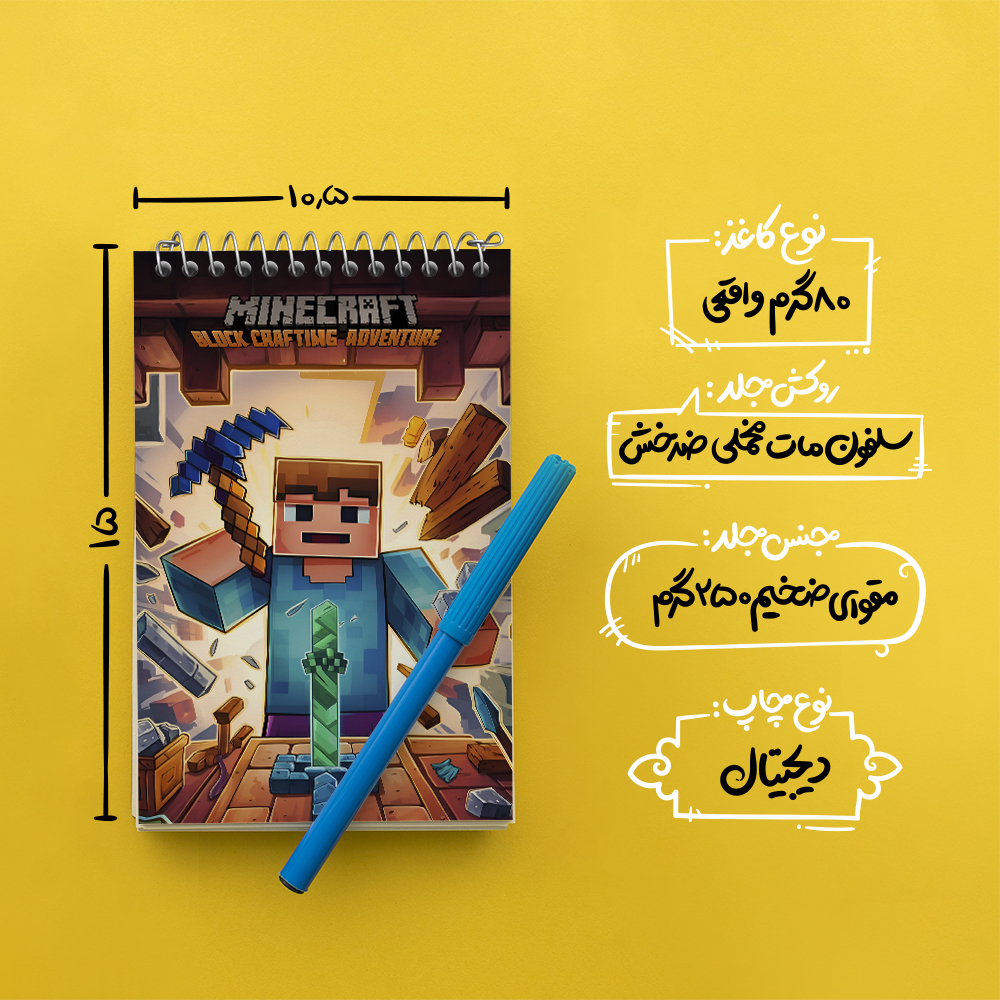 برند خندالو در زمینه تولید انواع دفاتر فانتزی و تحصیلی فعالیت میکند که به دلیل جذابیت ظاهری و طرح های متنوع طرفداران زیادی دارد. دفتر یادداشت خندالو طرح ماینکرافت (Minecraft) محصولی مناسب برای همه عاشقان لوازم التحریر است و همچنین همه کسانی که بنا به موقعیت تحصیل یا شغلشان با دفتر و نوشت افزار زیاد سر و کار دارند. در تولید دفتر یادداشت خندالو طرح ماینکرافت (Minecraft) از نوع صحافی فنر مارپیچ استفاده شده که در این نوع صحافی برگه‌ها به راحتی چرخیده و یا بیرون آورده می شوند.