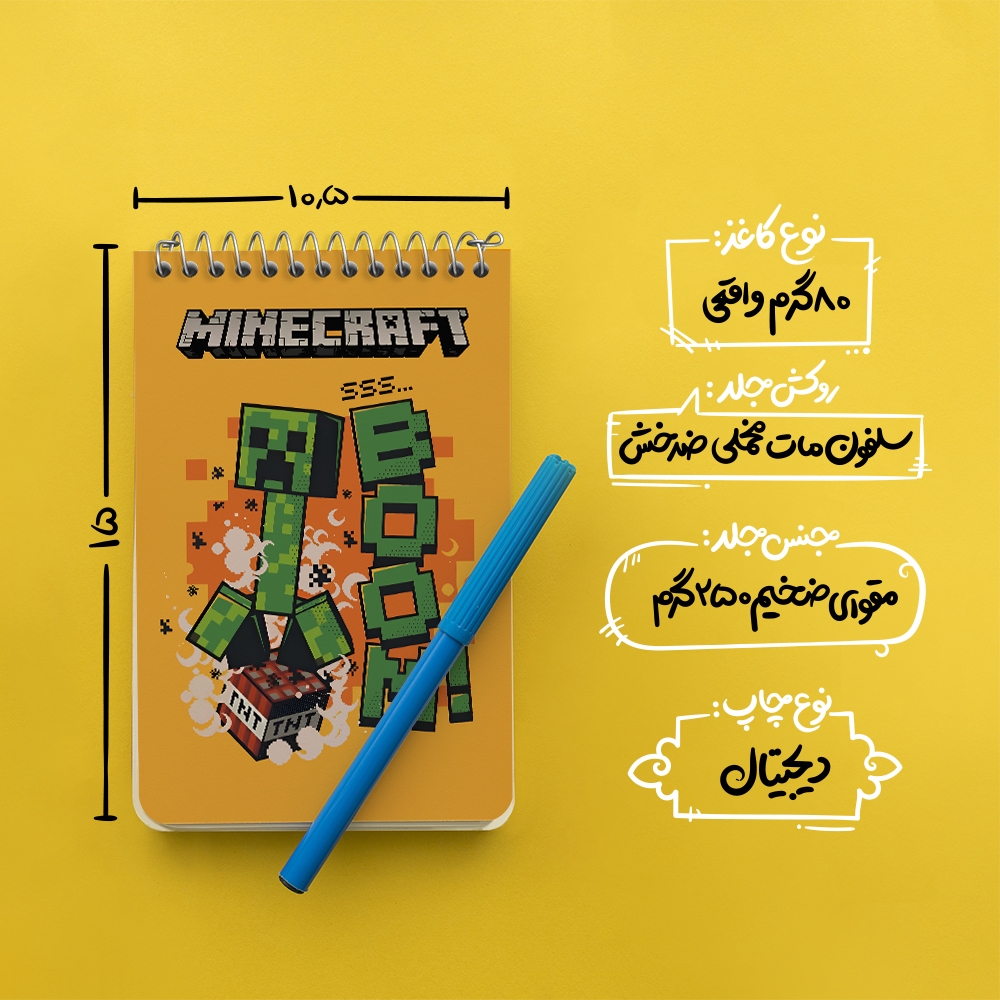 برند خندالو در زمینه تولید انواع دفاتر فانتزی و تحصیلی فعالیت میکند که به دلیل جذابیت ظاهری و طرح های متنوع طرفداران زیادی دارد. دفتر یادداشت خندالو طرح ماینکرافت (Minecraft) محصولی مناسب برای همه عاشقان لوازم التحریر است و همچنین همه کسانی که بنا به موقعیت تحصیل یا شغلشان با دفتر و نوشت افزار زیاد سر و کار دارند. در تولید دفتر یادداشت خندالو طرح ماینکرافت (Minecraft) از نوع صحافی فنر مارپیچ استفاده شده که در این نوع صحافی برگه‌ها به راحتی چرخیده و یا بیرون آورده می شوند.