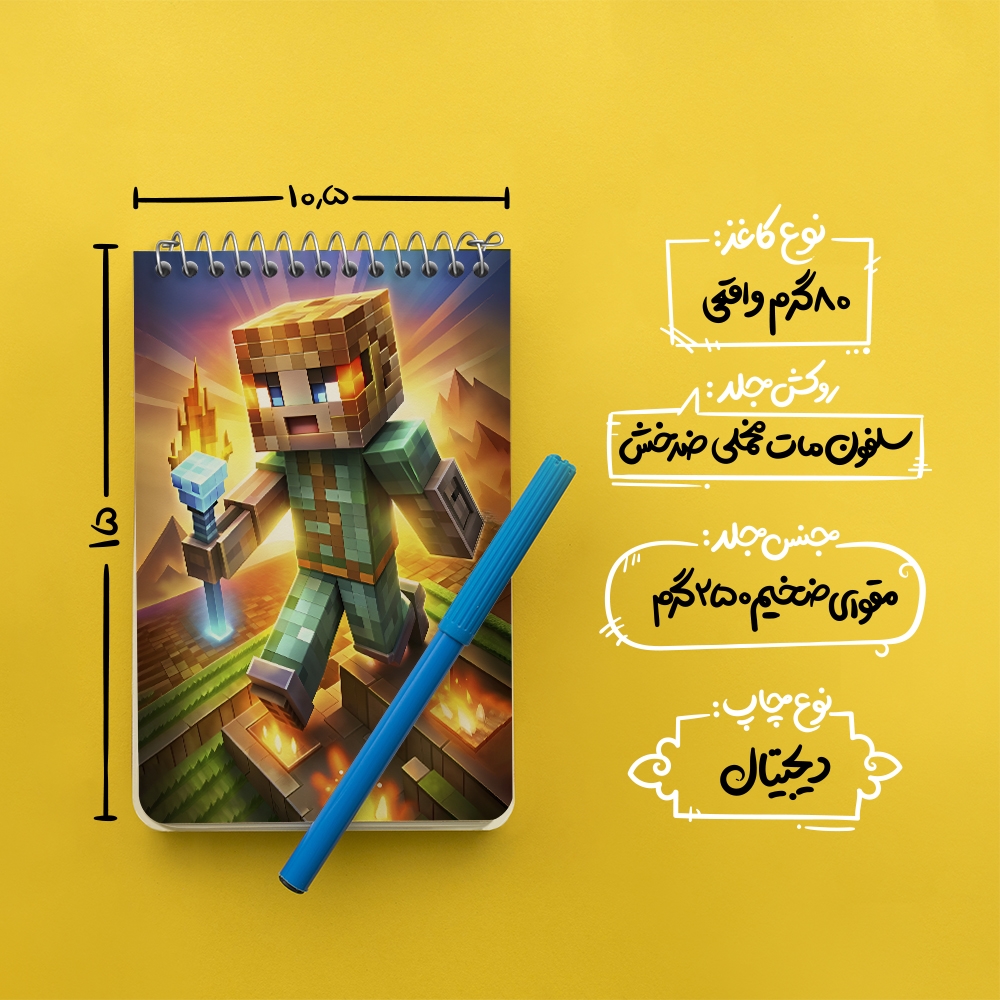 برند خندالو در زمینه تولید انواع دفاتر فانتزی و تحصیلی فعالیت میکند که به دلیل جذابیت ظاهری و طرح های متنوع طرفداران زیادی دارد. دفتر یادداشت خندالو طرح ماینکرافت (Minecraft) محصولی مناسب برای همه عاشقان لوازم التحریر است و همچنین همه کسانی که بنا به موقعیت تحصیل یا شغلشان با دفتر و نوشت افزار زیاد سر و کار دارند. در تولید دفتر یادداشت خندالو طرح ماینکرافت (Minecraft) از نوع صحافی فنر مارپیچ استفاده شده که در این نوع صحافی برگه‌ها به راحتی چرخیده و یا بیرون آورده می شوند.