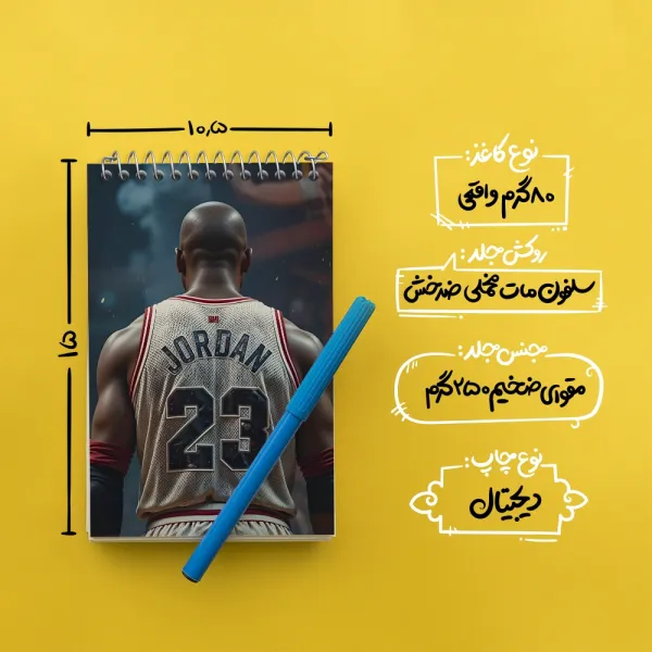 برند خندالو در زمینه تولید انواع دفاتر فانتزی و تحصیلی فعالیت میکند که به دلیل جذابیت ظاهری و طرح های متنوع طرفداران زیادی دارد. دفتر یادداشت خندالو طرح مایکل جردن (Michael Jordan) محصولی مناسب برای همه عاشقان لوازم التحریر است و همچنین همه کسانی که بنا به موقعیت تحصیل یا شغلشان با دفتر و نوشت افزار زیاد سر و کار دارند. در تولید دفتر یادداشت خندالو طرح مایکل جردن (Michael Jordan) از نوع صحافی فنر مارپیچ استفاده شده که در این نوع صحافی برگهها به راحتی چرخیده و یا بیرون آورده می شوند. دفتر های خندالو دارای جلد انعطاف پذیر از جنس مقوای گلاسه 250 گرم با روکش سلفون مات مخملی است که به شما امکان میدهد از دفتر خود بدون اینکه نگرانی از شکستن یا خراب شدن جلد را داشته باشید استفاده کنید و همچنین در این دفاتر از کاغذ 80 گرم با کیفیت استفاده شده که باعث میشود هنگام نوشتن به خوبی جوهر قلم بر روی صفحه نشسته و از خط خوردگیها جلوگیری کند. دفتر یادداشت خندالو با جنس و دوام مناسب، برگه های کاملاً سفید و خطوط طوسی دقیق را داراست که انسان را به نوشتن منظم و زیبا ترغیب میکند. طراحی کاملاً مناسب این دفاتر، به همراه کیفیت بالا، از آن یک محصول مورد علاقه و قابل اعتماد برای همه مقاطع تحصیلی میسازد. دفتر یادداشت خندالو طرح مایکل جردن (Michael Jordan) انتخابی هوشمندانه و مناسب برای افرادی است که به دنبال دفتری با کیفیت و کاربرد عالی هستند. این دفتر، همراه خوبی برای شما در تمام مراحل تحصیل و کار خواهد بود و تجربهای لذتبخش از نوشتن و آموختن را به شما هدیه میدهد.