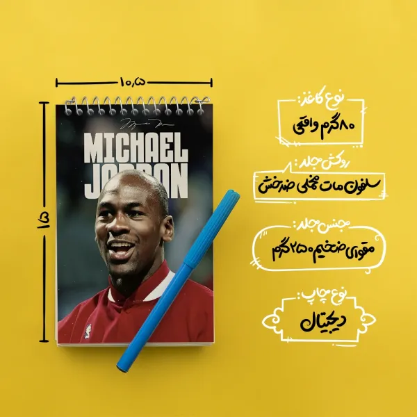 برند خندالو در زمینه تولید انواع دفاتر فانتزی و تحصیلی فعالیت میکند که به دلیل جذابیت ظاهری و طرح های متنوع طرفداران زیادی دارد. دفتر یادداشت خندالو طرح مایکل جردن (Michael Jordan) محصولی مناسب برای همه عاشقان لوازم التحریر است و همچنین همه کسانی که بنا به موقعیت تحصیل یا شغلشان با دفتر و نوشت افزار زیاد سر و کار دارند. در تولید دفتر یادداشت خندالو طرح مایکل جردن (Michael Jordan) از نوع صحافی فنر مارپیچ استفاده شده که در این نوع صحافی برگهها به راحتی چرخیده و یا بیرون آورده می شوند. دفتر های خندالو دارای جلد انعطاف پذیر از جنس مقوای گلاسه 250 گرم با روکش سلفون مات مخملی است که به شما امکان میدهد از دفتر خود بدون اینکه نگرانی از شکستن یا خراب شدن جلد را داشته باشید استفاده کنید و همچنین در این دفاتر از کاغذ 80 گرم با کیفیت استفاده شده که باعث میشود هنگام نوشتن به خوبی جوهر قلم بر روی صفحه نشسته و از خط خوردگیها جلوگیری کند. دفتر یادداشت خندالو با جنس و دوام مناسب، برگه های کاملاً سفید و خطوط طوسی دقیق را داراست که انسان را به نوشتن منظم و زیبا ترغیب میکند. طراحی کاملاً مناسب این دفاتر، به همراه کیفیت بالا، از آن یک محصول مورد علاقه و قابل اعتماد برای همه مقاطع تحصیلی میسازد. دفتر یادداشت خندالو طرح مایکل جردن (Michael Jordan) انتخابی هوشمندانه و مناسب برای افرادی است که به دنبال دفتری با کیفیت و کاربرد عالی هستند. این دفتر، همراه خوبی برای شما در تمام مراحل تحصیل و کار خواهد بود و تجربهای لذتبخش از نوشتن و آموختن را به شما هدیه میدهد.