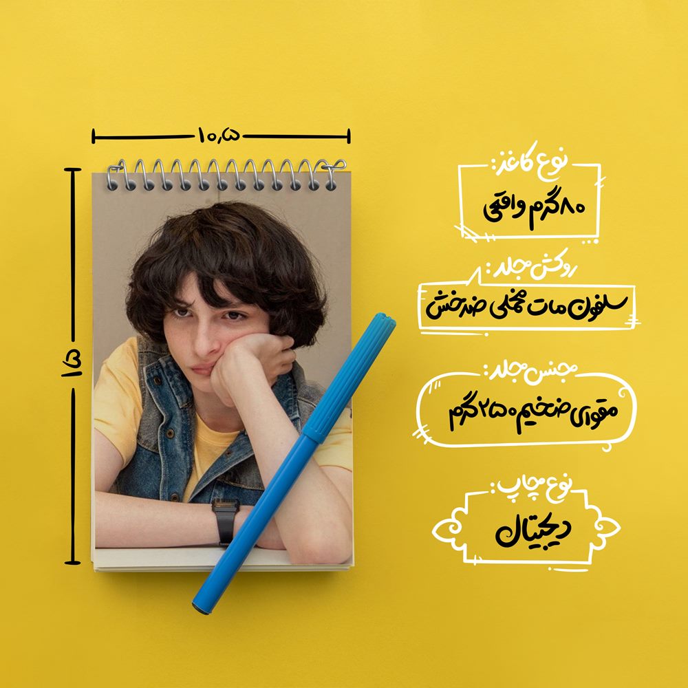 برند خندالو در زمینه تولید انواع دفاتر فانتزی و تحصیلی فعالیت میکند که به دلیل جذابیت ظاهری و طرح های متنوع طرفداران زیادی دارد. دفتر یادداشت خندالو طرح مایک سریال استرنجر تینگز Stranger Things محصولی مناسب برای همه عاشقان لوازم التحریر است و همچنین همه کسانی که بنا به موقعیت تحصیل یا شغلشان با دفتر و نوشت افزار زیاد سر و کار دارند. در تولید دفتر یادداشت خندالو طرح مایک سریال استرنجر تینگز Stranger Things از نوع صحافی فنر مارپیچ استفاده شده که در این نوع صحافی برگهها به راحتی چرخیده و یا بیرون آورده می شوند. دفتر های خندالو دارای جلد انعطاف پذیر از جنس مقوای گلاسه 250 گرم با روکش سلفون مات مخملی است که به شما امکان میدهد از دفتر خود بدون اینکه نگرانی از شکستن یا خراب شدن جلد را داشته باشید استفاده کنید و همچنین در این دفاتر از کاغذ 80 گرم با کیفیت استفاده شده که باعث میشود هنگام نوشتن به خوبی جوهر قلم بر روی صفحه نشسته و از خط خوردگیها جلوگیری کند. دفتر یادداشت خندالو با جنس و دوام مناسب، برگه های کاملاً سفید و خطوط طوسی دقیق را داراست که انسان را به نوشتن منظم و زیبا ترغیب میکند. طراحی کاملاً مناسب این دفاتر، به همراه کیفیت بالا، از آن یک محصول مورد علاقه و قابل اعتماد برای همه مقاطع تحصیلی میسازد. دفتر یادداشت خندالو طرح مایک سریال استرنجر تینگز Stranger Things انتخابی هوشمندانه و مناسب برای افرادی است که به دنبال دفتری با کیفیت و کاربرد عالی هستند. این دفتر، همراه خوبی برای شما در تمام مراحل تحصیل و کار خواهد بود و تجربهای لذتبخش از نوشتن و آموختن را به شما هدیه میدهد.
