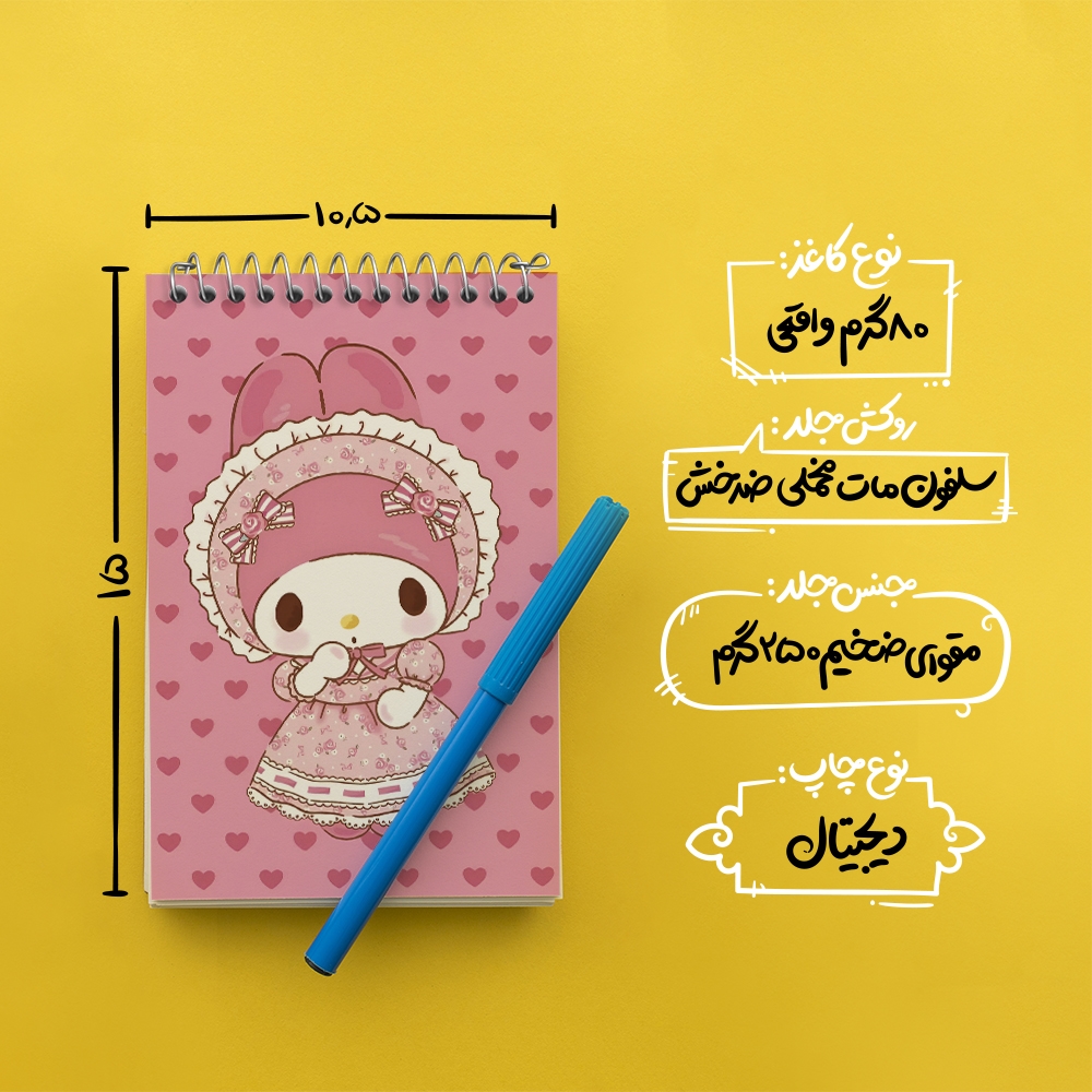 برند خندالو در زمینه تولید انواع دفاتر فانتزی و تحصیلی فعالیت میکند که به دلیل جذابیت ظاهری و طرح های متنوع طرفداران زیادی دارد. دفتر یادداشت خندالو طرح مای ملودی (My Melody) محصولی مناسب برای همه عاشقان لوازم التحریر است و همچنین همه کسانی که بنا به موقعیت تحصیل یا شغلشان با دفتر و نوشت افزار زیاد سر و کار دارند. در تولید دفتر یادداشت خندالو طرح مای ملودی (My Melody) از نوع صحافی فنر مارپیچ استفاده شده که در این نوع صحافی برگه‌ها به راحتی چرخیده و یا بیرون آورده می شوند.