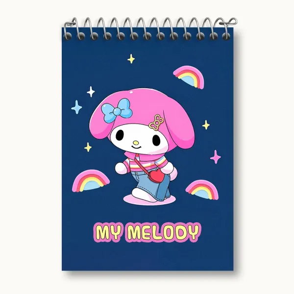 برند خندالو در زمینه تولید انواع دفاتر فانتزی و تحصیلی فعالیت میکند که به دلیل جذابیت ظاهری و طرح های متنوع طرفداران زیادی دارد. دفتر یادداشت خندالو طرح مای ملودی (My Melody) محصولی مناسب برای همه عاشقان لوازم التحریر است و همچنین همه کسانی که بنا به موقعیت تحصیل یا شغلشان با دفتر و نوشت افزار زیاد سر و کار دارند. در تولید دفتر یادداشت خندالو طرح مای ملودی (My Melody) از نوع صحافی فنر مارپیچ استفاده شده که در این نوع صحافی برگه‌ها به راحتی چرخیده و یا بیرون آورده می شوند.