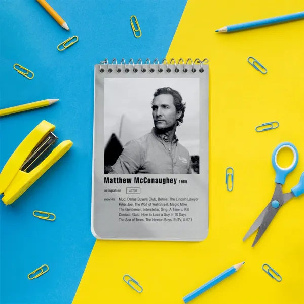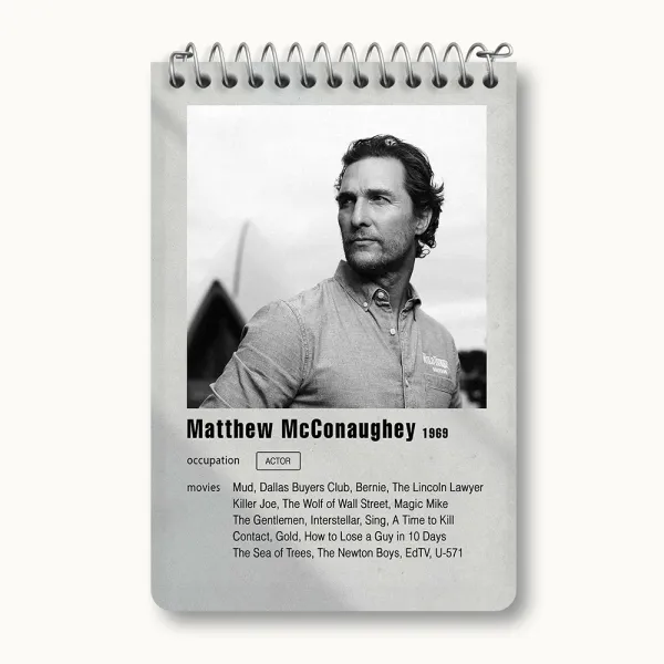 برند خندالو در زمینه تولید انواع دفاتر فانتزی و تحصیلی فعالیت میکند که به دلیل جذابیت ظاهری و طرح های متنوع طرفداران زیادی دارد. دفتر یادداشت خندالو طرح متیو مک کانهی (Matthew McConaughey) محصولی مناسب برای همه عاشقان لوازم التحریر است و همچنین همه کسانی که بنا به موقعیت تحصیل یا شغلشان با دفتر و نوشت افزار زیاد سر و کار دارند. در تولید دفتر یادداشت خندالو طرح متیو مک کانهی (Matthew McConaughey) از نوع صحافی فنر مارپیچ استفاده شده که در این نوع صحافی برگهها به راحتی چرخیده و یا بیرون آورده می شوند. دفتر های خندالو دارای جلد انعطاف پذیر از جنس مقوای گلاسه 250 گرم با روکش سلفون مات مخملی است که به شما امکان میدهد از دفتر خود بدون اینکه نگرانی از شکستن یا خراب شدن جلد را داشته باشید استفاده کنید و همچنین در این دفاتر از کاغذ 80 گرم با کیفیت استفاده شده که باعث میشود هنگام نوشتن به خوبی جوهر قلم بر روی صفحه نشسته و از خط خوردگیها جلوگیری کند. دفتر یادداشت خندالو با جنس و دوام مناسب، برگه های کاملاً سفید و خطوط طوسی دقیق را داراست که انسان را به نوشتن منظم و زیبا ترغیب میکند. طراحی کاملاً مناسب این دفاتر، به همراه کیفیت بالا، از آن یک محصول مورد علاقه و قابل اعتماد برای همه مقاطع تحصیلی میسازد. دفتر یادداشت خندالو طرح متیو مک کانهی (Matthew McConaughey) انتخابی هوشمندانه و مناسب برای افرادی است که به دنبال دفتری با کیفیت و کاربرد عالی هستند. این دفتر، همراه خوبی برای شما در تمام مراحل تحصیل و کار خواهد بود و تجربهای لذتبخش از نوشتن و آموختن را به شما هدیه میدهد.