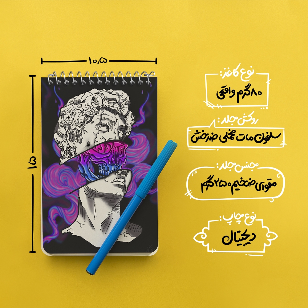 برند خندالو در زمینه تولید انواع دفاتر فانتزی و تحصیلی فعالیت میکند که به دلیل جذابیت ظاهری و طرح های متنوع طرفداران زیادی دارد. دفتر یادداشت خندالو طرح مجسمه داوود محصولی مناسب برای همه عاشقان لوازم التحریر است و همچنین همه کسانی که بنا به موقعیت تحصیل یا شغلشان با دفتر و نوشت افزار زیاد سر و کار دارند. در تولید دفتر یادداشت خندالو طرح مجسمه داوود از نوع صحافی فنر مارپیچ استفاده شده که در این نوع صحافی برگهها به راحتی چرخیده و یا بیرون آورده می شوند. دفتر های خندالو دارای جلد انعطاف پذیر از جنس مقوای گلاسه 250 گرم با روکش سلفون مات مخملی است که به شما امکان میدهد از دفتر خود بدون اینکه نگرانی از شکستن یا خراب شدن جلد را داشته باشید استفاده کنید و همچنین در این دفاتر از کاغذ 80 گرم با کیفیت استفاده شده که باعث میشود هنگام نوشتن به خوبی جوهر قلم بر روی صفحه نشسته و از خط خوردگیها جلوگیری کند. دفتر یادداشت خندالو با جنس و دوام مناسب، برگه های کاملاً سفید و خطوط طوسی دقیق را داراست که انسان را به نوشتن منظم و زیبا ترغیب میکند. طراحی کاملاً مناسب این دفاتر، به همراه کیفیت بالا، از آن یک محصول مورد علاقه و قابل اعتماد برای همه مقاطع تحصیلی میسازد. دفتر یادداشت خندالو طرح مجسمه داوود انتخابی هوشمندانه و مناسب برای افرادی است که به دنبال دفتری با کیفیت و کاربرد عالی هستند. این دفتر، همراه خوبی برای شما در تمام مراحل تحصیل و کار خواهد بود و تجربهای لذتبخش از نوشتن و آموختن را به شما هدیه میدهد.