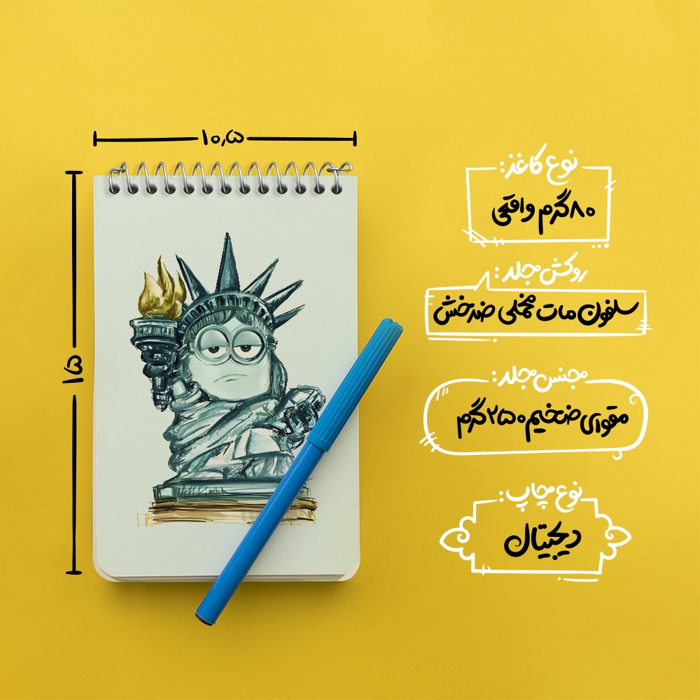برند خندالو در زمینه تولید انواع دفاتر فانتزی و تحصیلی فعالیت میکند که به دلیل جذابیت ظاهری و طرح های متنوع طرفداران زیادی دارد. دفتر یادداشت خندالو طرح مجسمه ی مینیون محصولی مناسب برای همه عاشقان لوازم التحریر است و همچنین همه کسانی که بنا به موقعیت تحصیل یا شغلشان با دفتر و نوشت افزار زیاد سر و کار دارند. در تولید دفتر یادداشت خندالو طرح مجسمه ی مینیون از نوع صحافی فنر مارپیچ استفاده شده که در این نوع صحافی برگهها به راحتی چرخیده و یا بیرون آورده می شوند. دفتر های خندالو دارای جلد انعطاف پذیر از جنس مقوای گلاسه 250 گرم با روکش سلفون مات مخملی است که به شما امکان میدهد از دفتر خود بدون اینکه نگرانی از شکستن یا خراب شدن جلد را داشته باشید استفاده کنید و همچنین در این دفاتر از کاغذ 80 گرم با کیفیت استفاده شده که باعث میشود هنگام نوشتن به خوبی جوهر قلم بر روی صفحه نشسته و از خط خوردگیها جلوگیری کند. دفتر یادداشت خندالو با جنس و دوام مناسب، برگه های کاملاً سفید و خطوط طوسی دقیق را داراست که انسان را به نوشتن منظم و زیبا ترغیب میکند. طراحی کاملاً مناسب این دفاتر، به همراه کیفیت بالا، از آن یک محصول مورد علاقه و قابل اعتماد برای همه مقاطع تحصیلی میسازد. دفتر یادداشت خندالو طرح مجسمه ی مینیون انتخابی هوشمندانه و مناسب برای افرادی است که به دنبال دفتری با کیفیت و کاربرد عالی هستند. این دفتر، همراه خوبی برای شما در تمام مراحل تحصیل و کار خواهد بود و تجربهای لذتبخش از نوشتن و آموختن را به شما هدیه میدهد.