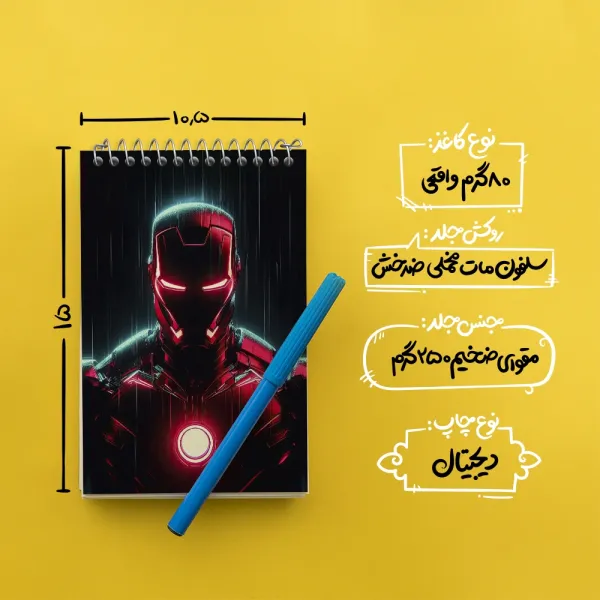 برند خندالو در زمینه تولید انواع دفاتر فانتزی و تحصیلی فعالیت میکند که به دلیل جذابیت ظاهری و طرح های متنوع طرفداران زیادی دارد. دفتر یادداشت خندالو طرح مرد آهنی (Iron Man Marvel) محصولی مناسب برای همه عاشقان لوازم التحریر است و همچنین همه کسانی که بنا به موقعیت تحصیل یا شغلشان با دفتر و نوشت افزار زیاد سر و کار دارند. در تولید دفتر یادداشت خندالو طرح مرد آهنی (Iron Man Marvel) از نوع صحافی فنر مارپیچ استفاده شده که در این نوع صحافی برگهها به راحتی چرخیده و یا بیرون آورده می شوند. دفتر های خندالو دارای جلد انعطاف پذیر از جنس مقوای گلاسه 250 گرم با روکش سلفون مات مخملی است که به شما امکان میدهد از دفتر خود بدون اینکه نگرانی از شکستن یا خراب شدن جلد را داشته باشید استفاده کنید و همچنین در این دفاتر از کاغذ 80 گرم با کیفیت استفاده شده که باعث میشود هنگام نوشتن به خوبی جوهر قلم بر روی صفحه نشسته و از خط خوردگیها جلوگیری کند. دفتر یادداشت خندالو با جنس و دوام مناسب، برگه های کاملاً سفید و خطوط طوسی دقیق را داراست که انسان را به نوشتن منظم و زیبا ترغیب میکند. طراحی کاملاً مناسب این دفاتر، به همراه کیفیت بالا، از آن یک محصول مورد علاقه و قابل اعتماد برای همه مقاطع تحصیلی میسازد. دفتر یادداشت خندالو طرح مرد آهنی (Iron Man Marvel) انتخابی هوشمندانه و مناسب برای افرادی است که به دنبال دفتری با کیفیت و کاربرد عالی هستند. این دفتر، همراه خوبی برای شما در تمام مراحل تحصیل و کار خواهد بود و تجربهای لذتبخش از نوشتن و آموختن را به شما هدیه میدهد.