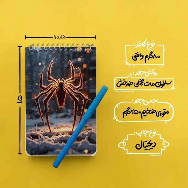 برند خندالو در زمینه تولید انواع دفاتر فانتزی و تحصیلی فعالیت میکند که به دلیل جذابیت ظاهری و طرح های متنوع طرفداران زیادی دارد. دفتر یادداشت خندالو طرح مرد عنکبوتی محصولی مناسب برای همه عاشقان لوازم التحریر است و همچنین همه کسانی که بنا به موقعیت تحصیل یا شغلشان با دفتر و نوشت افزار زیاد سر و کار دارند. در تولید دفتر یادداشت خندالو طرح مرد عنکبوتی از نوع صحافی فنر مارپیچ استفاده شده که در این نوع صحافی برگه‌ها به راحتی چرخیده و یا بیرون آورده می شوند.