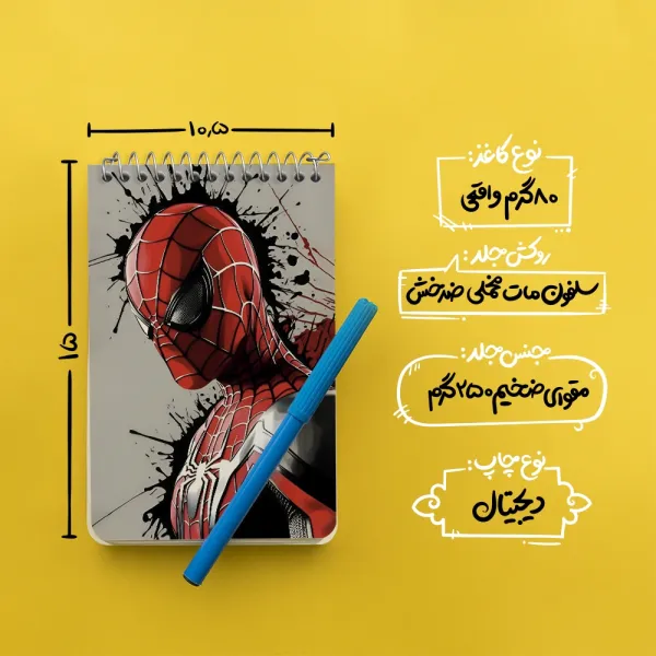 برند خندالو در زمینه تولید انواع دفاتر فانتزی و تحصیلی فعالیت میکند که به دلیل جذابیت ظاهری و طرح های متنوع طرفداران زیادی دارد. دفتر یادداشت خندالو طرح مرد عنکبوتی محصولی مناسب برای همه عاشقان لوازم التحریر است و همچنین همه کسانی که بنا به موقعیت تحصیل یا شغلشان با دفتر و نوشت افزار زیاد سر و کار دارند. در تولید دفتر یادداشت خندالو طرح مرد عنکبوتی از نوع صحافی فنر مارپیچ استفاده شده که در این نوع صحافی برگه‌ها به راحتی چرخیده و یا بیرون آورده می شوند.