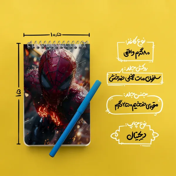 برند خندالو در زمینه تولید انواع دفاتر فانتزی و تحصیلی فعالیت میکند که به دلیل جذابیت ظاهری و طرح های متنوع طرفداران زیادی دارد. دفتر یادداشت خندالو طرح مرد عنکبوتی محصولی مناسب برای همه عاشقان لوازم التحریر است و همچنین همه کسانی که بنا به موقعیت تحصیل یا شغلشان با دفتر و نوشت افزار زیاد سر و کار دارند. در تولید دفتر یادداشت خندالو طرح مرد عنکبوتی از نوع صحافی فنر مارپیچ استفاده شده که در این نوع صحافی برگه‌ها به راحتی چرخیده و یا بیرون آورده می شوند.