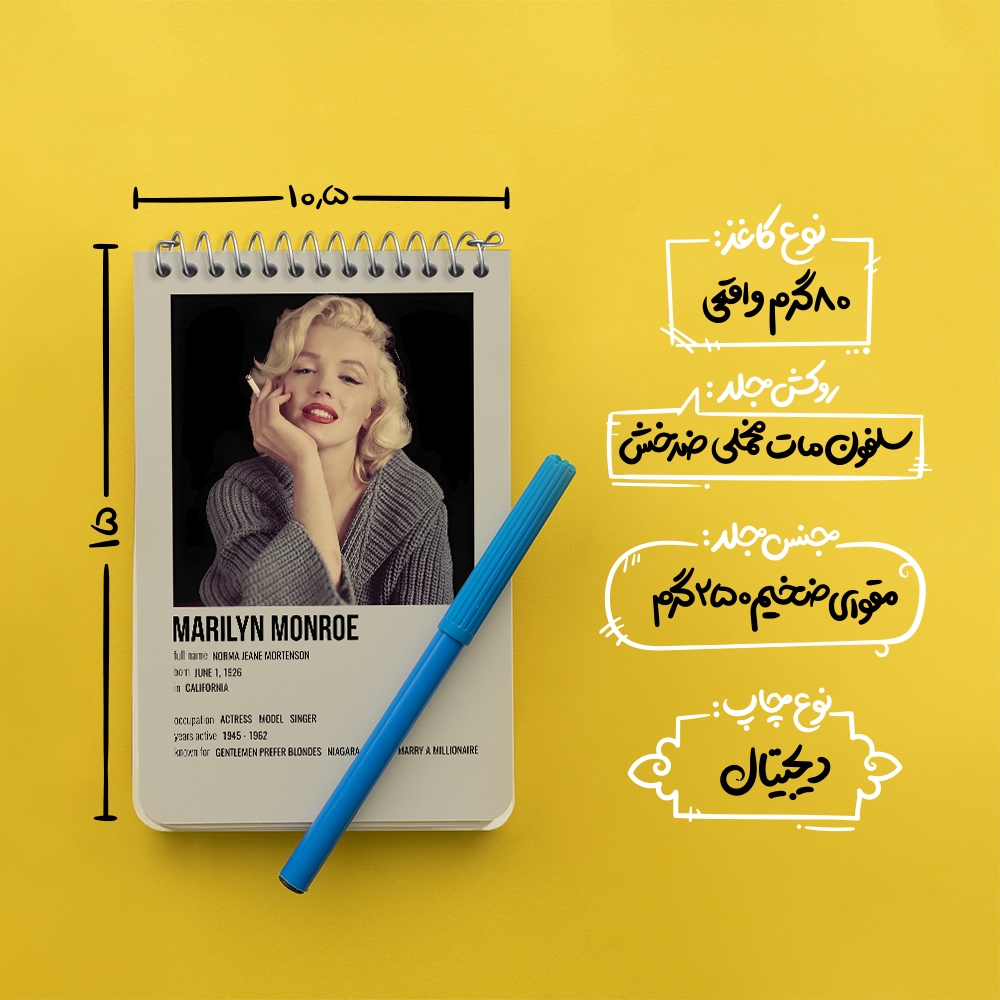 برند خندالو در زمینه تولید انواع دفاتر فانتزی و تحصیلی فعالیت میکند که به دلیل جذابیت ظاهری و طرح های متنوع طرفداران زیادی دارد. دفتر یادداشت خندالو طرح مریلین مونرو (Marilyn Monroe) محصولی مناسب برای همه عاشقان لوازم التحریر است و همچنین همه کسانی که بنا به موقعیت تحصیل یا شغلشان با دفتر و نوشت افزار زیاد سر و کار دارند. در تولید دفتر یادداشت خندالو طرح مریلین مونرو (Marilyn Monroe) از نوع صحافی فنر مارپیچ استفاده شده که در این نوع صحافی برگهها به راحتی چرخیده و یا بیرون آورده می شوند. دفتر های خندالو دارای جلد انعطاف پذیر از جنس مقوای گلاسه 250 گرم با روکش سلفون مات مخملی است که به شما امکان میدهد از دفتر خود بدون اینکه نگرانی از شکستن یا خراب شدن جلد را داشته باشید استفاده کنید و همچنین در این دفاتر از کاغذ 80 گرم با کیفیت استفاده شده که باعث میشود هنگام نوشتن به خوبی جوهر قلم بر روی صفحه نشسته و از خط خوردگیها جلوگیری کند. دفتر یادداشت خندالو با جنس و دوام مناسب، برگه های کاملاً سفید و خطوط طوسی دقیق را داراست که انسان را به نوشتن منظم و زیبا ترغیب میکند. طراحی کاملاً مناسب این دفاتر، به همراه کیفیت بالا، از آن یک محصول مورد علاقه و قابل اعتماد برای همه مقاطع تحصیلی میسازد. دفتر یادداشت خندالو طرح مریلین مونرو (Marilyn Monroe) انتخابی هوشمندانه و مناسب برای افرادی است که به دنبال دفتری با کیفیت و کاربرد عالی هستند. این دفتر، همراه خوبی برای شما در تمام مراحل تحصیل و کار خواهد بود و تجربهای لذتبخش از نوشتن و آموختن را به شما هدیه میدهد.