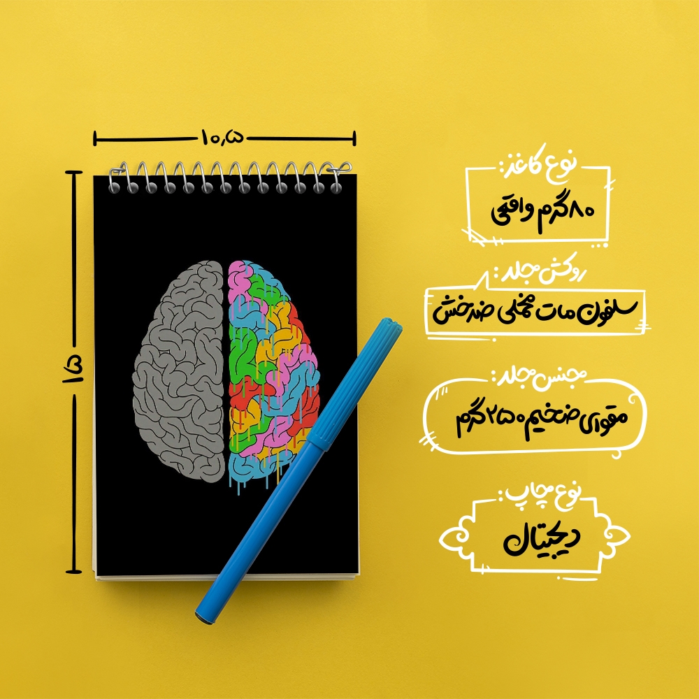 برند خندالو در زمینه تولید انواع دفاتر فانتزی و تحصیلی فعالیت میکند که به دلیل جذابیت ظاهری و طرح های متنوع طرفداران زیادی دارد. دفتر یادداشت خندالو طرح مغز Brain محصولی مناسب برای همه عاشقان لوازم التحریر است و همچنین همه کسانی که بنا به موقعیت تحصیل یا شغلشان با دفتر و نوشت افزار زیاد سر و کار دارند. در تولید دفتر یادداشت خندالو طرح مغز Brain از نوع صحافی فنر مارپیچ استفاده شده که در این نوع صحافی برگه‌ها به راحتی چرخیده و یا بیرون آورده می شوند.
