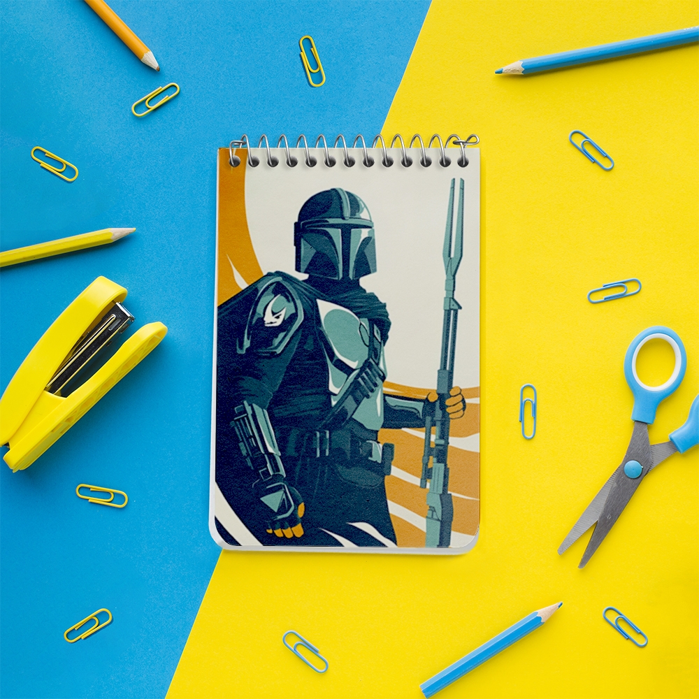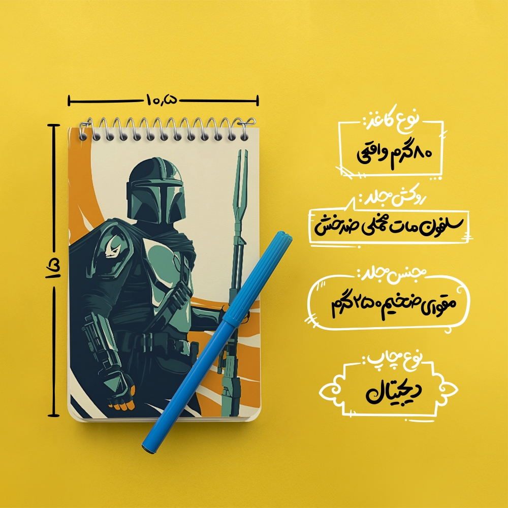برند خندالو در زمینه تولید انواع دفاتر فانتزی و تحصیلی فعالیت میکند که به دلیل جذابیت ظاهری و طرح های متنوع طرفداران زیادی دارد. دفتر یادداشت خندالو طرح مندلورین (The Mandalorian) محصولی مناسب برای همه عاشقان لوازم التحریر است و همچنین همه کسانی که بنا به موقعیت تحصیل یا شغلشان با دفتر و نوشت افزار زیاد سر و کار دارند. در تولید دفتر یادداشت خندالو طرح مندلورین (The Mandalorian) از نوع صحافی فنر مارپیچ استفاده شده که در این نوع صحافی برگه‌ها به راحتی چرخیده و یا بیرون آورده می شوند.