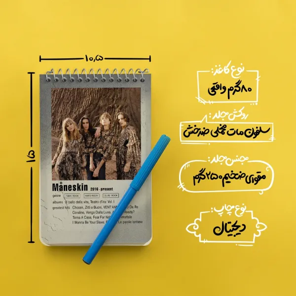برند خندالو در زمینه تولید انواع دفاتر فانتزی و تحصیلی فعالیت میکند که به دلیل جذابیت ظاهری و طرح های متنوع طرفداران زیادی دارد. دفتر یادداشت خندالو طرح منسکین (Måneskin) محصولی مناسب برای همه عاشقان لوازم التحریر است و همچنین همه کسانی که بنا به موقعیت تحصیل یا شغلشان با دفتر و نوشت افزار زیاد سر و کار دارند. در تولید دفتر یادداشت خندالو طرح منسکین (Måneskin) از نوع صحافی فنر مارپیچ استفاده شده که در این نوع صحافی برگهها به راحتی چرخیده و یا بیرون آورده می شوند. دفتر های خندالو دارای جلد انعطاف پذیر از جنس مقوای گلاسه 250 گرم با روکش سلفون مات مخملی است که به شما امکان میدهد از دفتر خود بدون اینکه نگرانی از شکستن یا خراب شدن جلد را داشته باشید استفاده کنید و همچنین در این دفاتر از کاغذ 80 گرم با کیفیت استفاده شده که باعث میشود هنگام نوشتن به خوبی جوهر قلم بر روی صفحه نشسته و از خط خوردگیها جلوگیری کند. دفتر یادداشت خندالو با جنس و دوام مناسب، برگه های کاملاً سفید و خطوط طوسی دقیق را داراست که انسان را به نوشتن منظم و زیبا ترغیب میکند. طراحی کاملاً مناسب این دفاتر، به همراه کیفیت بالا، از آن یک محصول مورد علاقه و قابل اعتماد برای همه مقاطع تحصیلی میسازد. دفتر یادداشت خندالو طرح منسکین (Måneskin) انتخابی هوشمندانه و مناسب برای افرادی است که به دنبال دفتری با کیفیت و کاربرد عالی هستند. این دفتر، همراه خوبی برای شما در تمام مراحل تحصیل و کار خواهد بود و تجربهای لذتبخش از نوشتن و آموختن را به شما هدیه میدهد.