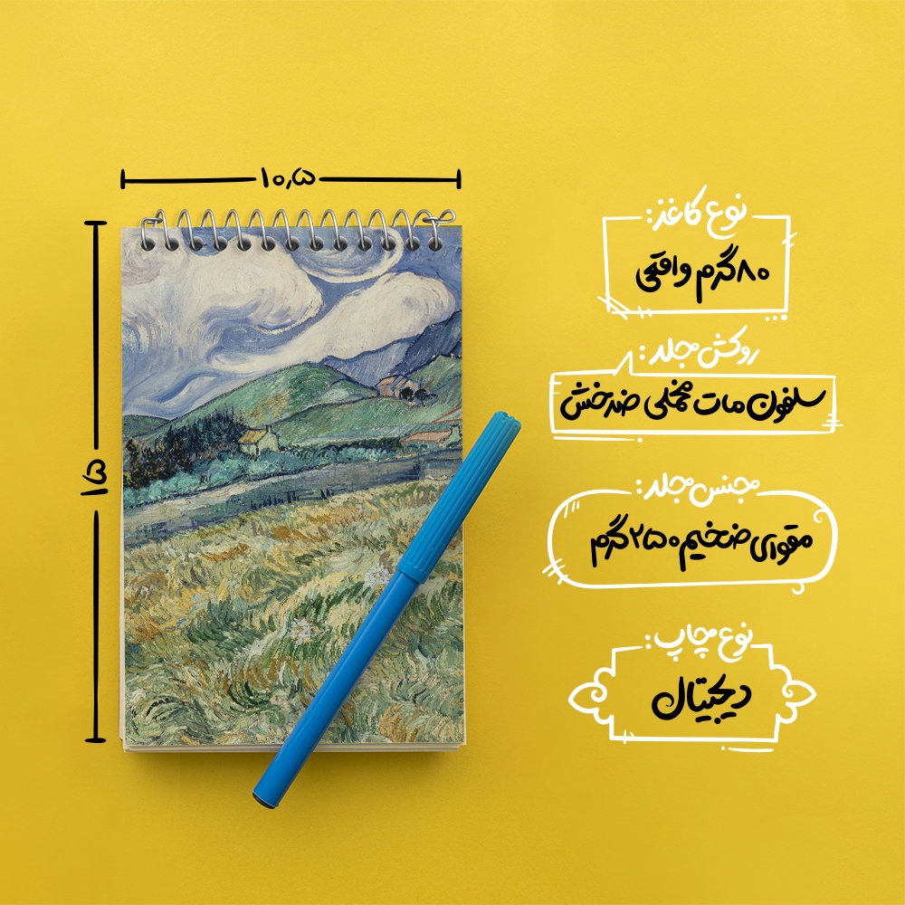 برند خندالو در زمینه تولید انواع دفاتر فانتزی و تحصیلی فعالیت میکند که به دلیل جذابیت ظاهری و طرح های متنوع طرفداران زیادی دارد. دفتر یادداشت خندالو طرح منظره کوه پشت بیمارستان ونسان ونگوگ (Van Gogh) محصولی مناسب برای همه عاشقان لوازم التحریر است و همچنین همه کسانی که بنا به موقعیت تحصیل یا شغلشان با دفتر و نوشت افزار زیاد سر و کار دارند. در تولید دفتر یادداشت خندالو طرح منظره کوه پشت بیمارستان ونسان ونگوگ (Van Gogh) از نوع صحافی فنر مارپیچ استفاده شده که در این نوع صحافی برگهها به راحتی چرخیده و یا بیرون آورده می شوند. دفتر های خندالو دارای جلد انعطاف پذیر از جنس مقوای گلاسه 250 گرم با روکش سلفون مات مخملی است که به شما امکان میدهد از دفتر خود بدون اینکه نگرانی از شکستن یا خراب شدن جلد را داشته باشید استفاده کنید و همچنین در این دفاتر از کاغذ 80 گرم با کیفیت استفاده شده که باعث میشود هنگام نوشتن به خوبی جوهر قلم بر روی صفحه نشسته و از خط خوردگیها جلوگیری کند. دفتر یادداشت خندالو با جنس و دوام مناسب، برگه های کاملاً سفید و خطوط طوسی دقیق را داراست که انسان را به نوشتن منظم و زیبا ترغیب میکند. طراحی کاملاً مناسب این دفاتر، به همراه کیفیت بالا، از آن یک محصول مورد علاقه و قابل اعتماد برای همه مقاطع تحصیلی میسازد. دفتر یادداشت خندالو طرح منظره کوه پشت بیمارستان ونسان ونگوگ (Van Gogh) انتخابی هوشمندانه و مناسب برای افرادی است که به دنبال دفتری با کیفیت و کاربرد عالی هستند. این دفتر، همراه خوبی برای شما در تمام مراحل تحصیل و کار خواهد بود و تجربهای لذتبخش از نوشتن و آموختن را به شما هدیه میدهد.