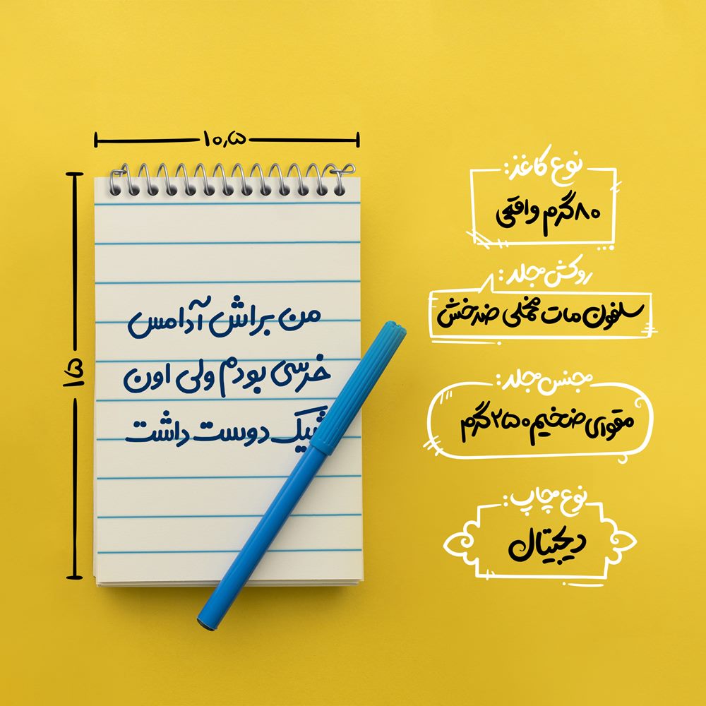 برند خندالو در زمینه تولید انواع دفاتر فانتزی و تحصیلی فعالیت میکند که به دلیل جذابیت ظاهری و طرح های متنوع طرفداران زیادی دارد. دفتر یادداشت خندالو طرح من براش آدامس خرسی بودم ولی اون شیک دوست داشت محصولی مناسب برای همه عاشقان لوازم التحریر است و همچنین همه کسانی که بنا به موقعیت تحصیل یا شغلشان با دفتر و نوشت افزار زیاد سر و کار دارند. در تولید دفتر یادداشت خندالو طرح من براش آدامس خرسی بودم ولی اون شیک دوست داشت از نوع صحافی فنر مارپیچ استفاده شده که در این نوع صحافی برگهها به راحتی چرخیده و یا بیرون آورده می شوند. دفتر های خندالو دارای جلد انعطاف پذیر از جنس مقوای گلاسه 250 گرم با روکش سلفون مات مخملی است که به شما امکان میدهد از دفتر خود بدون اینکه نگرانی از شکستن یا خراب شدن جلد را داشته باشید استفاده کنید و همچنین در این دفاتر از کاغذ 80 گرم با کیفیت استفاده شده که باعث میشود هنگام نوشتن به خوبی جوهر قلم بر روی صفحه نشسته و از خط خوردگیها جلوگیری کند. دفتر یادداشت خندالو با جنس و دوام مناسب، برگه های کاملاً سفید و خطوط طوسی دقیق را داراست که انسان را به نوشتن منظم و زیبا ترغیب میکند. طراحی کاملاً مناسب این دفاتر، به همراه کیفیت بالا، از آن یک محصول مورد علاقه و قابل اعتماد برای همه مقاطع تحصیلی میسازد. دفتر یادداشت خندالو طرح من براش آدامس خرسی بودم ولی اون شیک دوست داشت انتخابی هوشمندانه و مناسب برای افرادی است که به دنبال دفتری با کیفیت و کاربرد عالی هستند. این دفتر، همراه خوبی برای شما در تمام مراحل تحصیل و کار خواهد بود و تجربهای لذتبخش از نوشتن و آموختن را به شما هدیه میدهد.