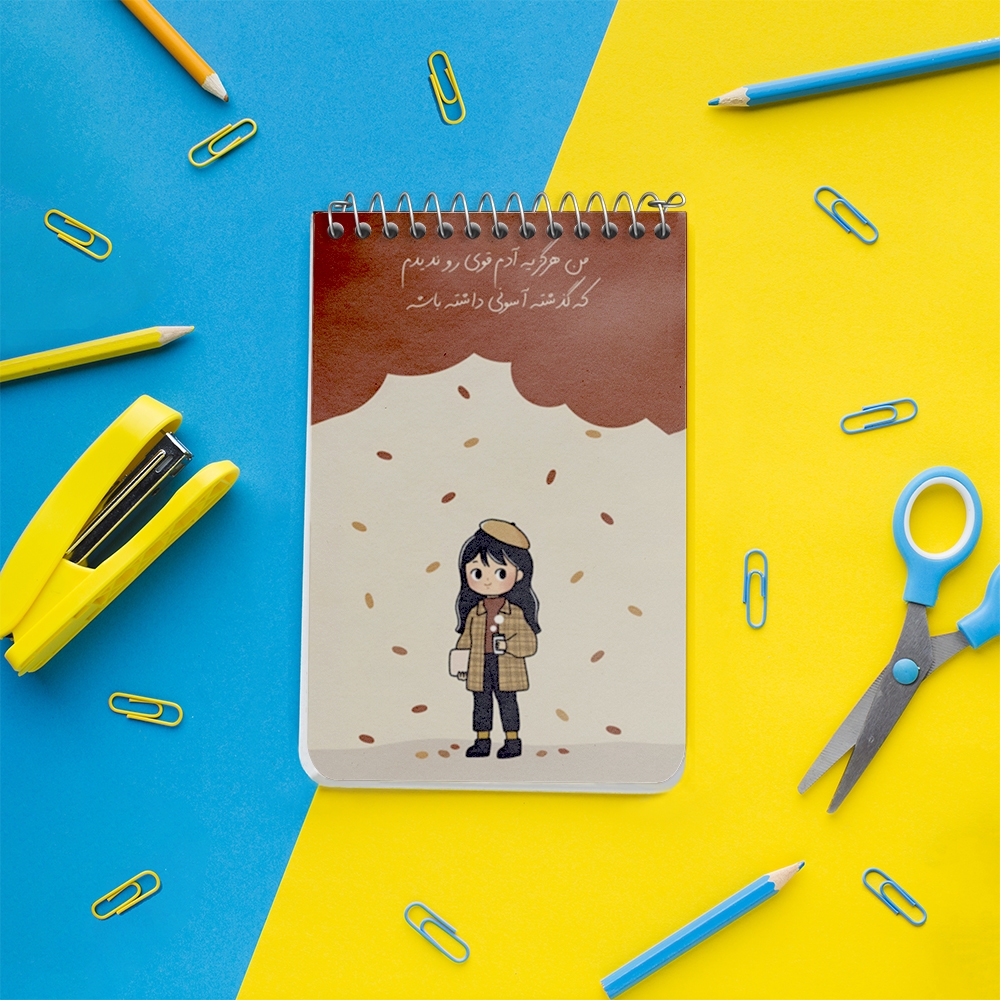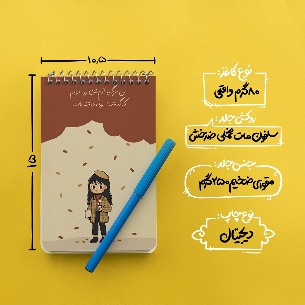 برند خندالو در زمینه تولید انواع دفاتر فانتزی و تحصیلی فعالیت میکند که به دلیل جذابیت ظاهری و طرح های متنوع طرفداران زیادی دارد. دفتر یادداشت خندالو طرح من هرگز یه آدم قوی رو ندیدم که گذشته آسونی داشته باشه محصولی مناسب برای همه عاشقان لوازم التحریر است و همچنین همه کسانی که بنا به موقعیت تحصیل یا شغلشان با دفتر و نوشت افزار زیاد سر و کار دارند. در تولید دفتر یادداشت خندالو طرح من هرگز یه آدم قوی رو ندیدم که گذشته آسونی داشته باشه از نوع صحافی فنر مارپیچ استفاده شده که در این نوع صحافی برگهها به راحتی چرخیده و یا بیرون آورده می شوند. دفتر های خندالو دارای جلد انعطاف پذیر از جنس مقوای گلاسه 250 گرم با روکش سلفون مات مخملی است که به شما امکان میدهد از دفتر خود بدون اینکه نگرانی از شکستن یا خراب شدن جلد را داشته باشید استفاده کنید و همچنین در این دفاتر از کاغذ 80 گرم با کیفیت استفاده شده که باعث میشود هنگام نوشتن به خوبی جوهر قلم بر روی صفحه نشسته و از خط خوردگیها جلوگیری کند. دفتر یادداشت خندالو با جنس و دوام مناسب، برگه های کاملاً سفید و خطوط طوسی دقیق را داراست که انسان را به نوشتن منظم و زیبا ترغیب میکند. طراحی کاملاً مناسب این دفاتر، به همراه کیفیت بالا، از آن یک محصول مورد علاقه و قابل اعتماد برای همه مقاطع تحصیلی میسازد. دفتر یادداشت خندالو طرح من هرگز یه آدم قوی رو ندیدم که گذشته آسونی داشته باشه انتخابی هوشمندانه و مناسب برای افرادی است که به دنبال دفتری با کیفیت و کاربرد عالی هستند. این دفتر، همراه خوبی برای شما در تمام مراحل تحصیل و کار خواهد بود و تجربهای لذتبخش از نوشتن و آموختن را به شما هدیه میدهد.