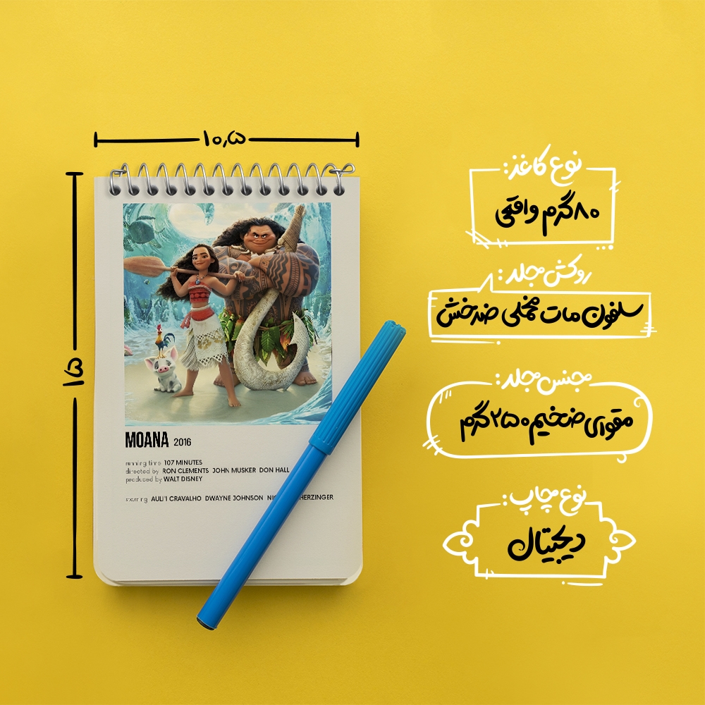 برند خندالو در زمینه تولید انواع دفاتر فانتزی و تحصیلی فعالیت میکند که به دلیل جذابیت ظاهری و طرح های متنوع طرفداران زیادی دارد. دفتر یادداشت خندالو طرح موآنا (Moana) محصولی مناسب برای همه عاشقان لوازم التحریر است و همچنین همه کسانی که بنا به موقعیت تحصیل یا شغلشان با دفتر و نوشت افزار زیاد سر و کار دارند. در تولید دفتر یادداشت خندالو طرح موآنا (Moana) از نوع صحافی فنر مارپیچ استفاده شده که در این نوع صحافی برگه‌ها به راحتی چرخیده و یا بیرون آورده می شوند.