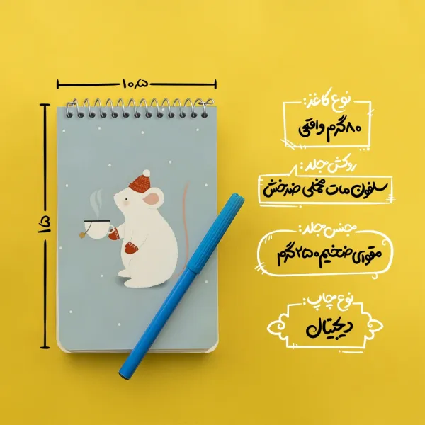 برند خندالو در زمینه تولید انواع دفاتر فانتزی و تحصیلی فعالیت میکند که به دلیل جذابیت ظاهری و طرح های متنوع طرفداران زیادی دارد. دفتر یادداشت خندالو طرح موش و زمستان محصولی مناسب برای همه عاشقان لوازم التحریر است و همچنین همه کسانی که بنا به موقعیت تحصیل یا شغلشان با دفتر و نوشت افزار زیاد سر و کار دارند. در تولید دفتر یادداشت خندالو طرح موش و زمستان از نوع صحافی فنر مارپیچ استفاده شده که در این نوع صحافی برگهها به راحتی چرخیده و یا بیرون آورده می شوند. دفتر های خندالو دارای جلد انعطاف پذیر از جنس مقوای گلاسه 250 گرم با روکش سلفون مات مخملی است که به شما امکان میدهد از دفتر خود بدون اینکه نگرانی از شکستن یا خراب شدن جلد را داشته باشید استفاده کنید و همچنین در این دفاتر از کاغذ 80 گرم با کیفیت استفاده شده که باعث میشود هنگام نوشتن به خوبی جوهر قلم بر روی صفحه نشسته و از خط خوردگیها جلوگیری کند. دفتر یادداشت خندالو با جنس و دوام مناسب، برگه های کاملاً سفید و خطوط طوسی دقیق را داراست که انسان را به نوشتن منظم و زیبا ترغیب میکند. طراحی کاملاً مناسب این دفاتر، به همراه کیفیت بالا، از آن یک محصول مورد علاقه و قابل اعتماد برای همه مقاطع تحصیلی میسازد. دفتر یادداشت خندالو طرح موش و زمستان انتخابی هوشمندانه و مناسب برای افرادی است که به دنبال دفتری با کیفیت و کاربرد عالی هستند. این دفتر، همراه خوبی برای شما در تمام مراحل تحصیل و کار خواهد بود و تجربهای لذتبخش از نوشتن و آموختن را به شما هدیه میدهد.