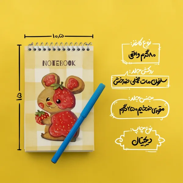 برند خندالو در زمینه تولید انواع دفاتر فانتزی و تحصیلی فعالیت میکند که به دلیل جذابیت ظاهری و طرح های متنوع طرفداران زیادی دارد. دفتر یادداشت خندالو طرح موش و مربای توت فرنگی محصولی مناسب برای همه عاشقان لوازم التحریر است و همچنین همه کسانی که بنا به موقعیت تحصیل یا شغلشان با دفتر و نوشت افزار زیاد سر و کار دارند. در تولید دفتر یادداشت خندالو طرح موش و مربای توت فرنگی از نوع صحافی فنر مارپیچ استفاده شده که در این نوع صحافی برگهها به راحتی چرخیده و یا بیرون آورده می شوند. دفتر های خندالو دارای جلد انعطاف پذیر از جنس مقوای گلاسه 250 گرم با روکش سلفون مات مخملی است که به شما امکان میدهد از دفتر خود بدون اینکه نگرانی از شکستن یا خراب شدن جلد را داشته باشید استفاده کنید و همچنین در این دفاتر از کاغذ 80 گرم با کیفیت استفاده شده که باعث میشود هنگام نوشتن به خوبی جوهر قلم بر روی صفحه نشسته و از خط خوردگیها جلوگیری کند. دفتر یادداشت خندالو با جنس و دوام مناسب، برگه های کاملاً سفید و خطوط طوسی دقیق را داراست که انسان را به نوشتن منظم و زیبا ترغیب میکند. طراحی کاملاً مناسب این دفاتر، به همراه کیفیت بالا، از آن یک محصول مورد علاقه و قابل اعتماد برای همه مقاطع تحصیلی میسازد. دفتر یادداشت خندالو طرح موش و مربای توت فرنگی انتخابی هوشمندانه و مناسب برای افرادی است که به دنبال دفتری با کیفیت و کاربرد عالی هستند. این دفتر، همراه خوبی برای شما در تمام مراحل تحصیل و کار خواهد بود و تجربهای لذتبخش از نوشتن و آموختن را به شما هدیه میدهد.