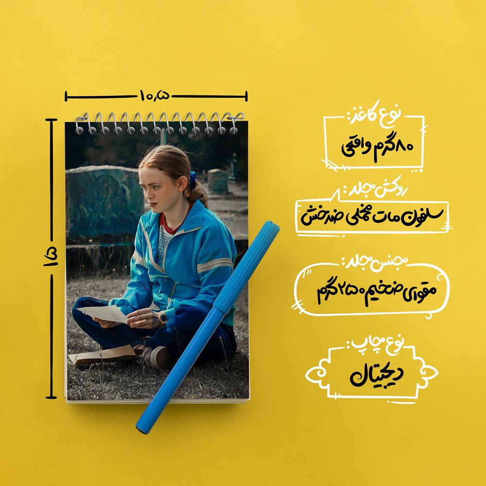 برند خندالو در زمینه تولید انواع دفاتر فانتزی و تحصیلی فعالیت میکند که به دلیل جذابیت ظاهری و طرح های متنوع طرفداران زیادی دارد. دفتر یادداشت خندالو طرح مکس سریال استرنجر تینگز Stranger Things محصولی مناسب برای همه عاشقان لوازم التحریر است و همچنین همه کسانی که بنا به موقعیت تحصیل یا شغلشان با دفتر و نوشت افزار زیاد سر و کار دارند. در تولید دفتر یادداشت خندالو طرح مکس سریال استرنجر تینگز Stranger Things از نوع صحافی فنر مارپیچ استفاده شده که در این نوع صحافی برگهها به راحتی چرخیده و یا بیرون آورده می شوند. دفتر های خندالو دارای جلد انعطاف پذیر از جنس مقوای گلاسه 250 گرم با روکش سلفون مات مخملی است که به شما امکان میدهد از دفتر خود بدون اینکه نگرانی از شکستن یا خراب شدن جلد را داشته باشید استفاده کنید و همچنین در این دفاتر از کاغذ 80 گرم با کیفیت استفاده شده که باعث میشود هنگام نوشتن به خوبی جوهر قلم بر روی صفحه نشسته و از خط خوردگیها جلوگیری کند. دفتر یادداشت خندالو با جنس و دوام مناسب، برگه های کاملاً سفید و خطوط طوسی دقیق را داراست که انسان را به نوشتن منظم و زیبا ترغیب میکند. طراحی کاملاً مناسب این دفاتر، به همراه کیفیت بالا، از آن یک محصول مورد علاقه و قابل اعتماد برای همه مقاطع تحصیلی میسازد. دفتر یادداشت خندالو طرح مکس سریال استرنجر تینگز Stranger Things انتخابی هوشمندانه و مناسب برای افرادی است که به دنبال دفتری با کیفیت و کاربرد عالی هستند. این دفتر، همراه خوبی برای شما در تمام مراحل تحصیل و کار خواهد بود و تجربهای لذتبخش از نوشتن و آموختن را به شما هدیه میدهد.