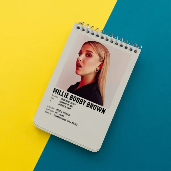 برند خندالو در زمینه تولید انواع دفاتر فانتزی و تحصیلی فعالیت میکند که به دلیل جذابیت ظاهری و طرح های متنوع طرفداران زیادی دارد. دفتر یادداشت خندالو طرح میلی بانی براون (Millie Bobby Brown) محصولی مناسب برای همه عاشقان لوازم التحریر است و همچنین همه کسانی که بنا به موقعیت تحصیل یا شغلشان با دفتر و نوشت افزار زیاد سر و کار دارند. در تولید دفتر یادداشت خندالو طرح میلی بانی براون (Millie Bobby Brown) از نوع صحافی فنر مارپیچ استفاده شده که در این نوع صحافی برگهها به راحتی چرخیده و یا بیرون آورده می شوند. دفتر های خندالو دارای جلد انعطاف پذیر از جنس مقوای گلاسه 250 گرم با روکش سلفون مات مخملی است که به شما امکان میدهد از دفتر خود بدون اینکه نگرانی از شکستن یا خراب شدن جلد را داشته باشید استفاده کنید و همچنین در این دفاتر از کاغذ 80 گرم با کیفیت استفاده شده که باعث میشود هنگام نوشتن به خوبی جوهر قلم بر روی صفحه نشسته و از خط خوردگیها جلوگیری کند. دفتر یادداشت خندالو با جنس و دوام مناسب، برگه های کاملاً سفید و خطوط طوسی دقیق را داراست که انسان را به نوشتن منظم و زیبا ترغیب میکند. طراحی کاملاً مناسب این دفاتر، به همراه کیفیت بالا، از آن یک محصول مورد علاقه و قابل اعتماد برای همه مقاطع تحصیلی میسازد. دفتر یادداشت خندالو طرح میلی بانی براون (Millie Bobby Brown) انتخابی هوشمندانه و مناسب برای افرادی است که به دنبال دفتری با کیفیت و کاربرد عالی هستند. این دفتر، همراه خوبی برای شما در تمام مراحل تحصیل و کار خواهد بود و تجربهای لذتبخش از نوشتن و آموختن را به شما هدیه میدهد.