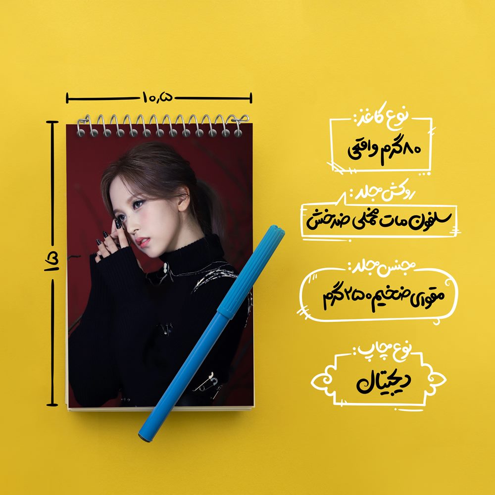 برند خندالو در زمینه تولید انواع دفاتر فانتزی و تحصیلی فعالیت میکند که به دلیل جذابیت ظاهری و طرح های متنوع طرفداران زیادی دارد. دفتر یادداشت خندالو طرح مینا گروه توایس TWICE محصولی مناسب برای همه عاشقان لوازم التحریر است و همچنین همه کسانی که بنا به موقعیت تحصیل یا شغلشان با دفتر و نوشت افزار زیاد سر و کار دارند. در تولید دفتر یادداشت خندالو طرح مینا گروه توایس TWICE از نوع صحافی فنر مارپیچ استفاده شده که در این نوع صحافی برگه‌ها به راحتی چرخیده و یا بیرون آورده می شوند.