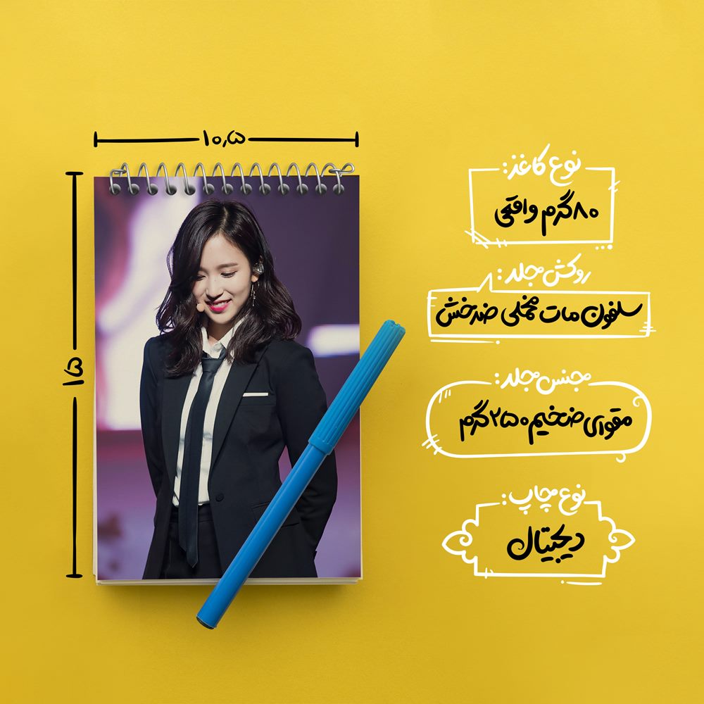 برند خندالو در زمینه تولید انواع دفاتر فانتزی و تحصیلی فعالیت میکند که به دلیل جذابیت ظاهری و طرح های متنوع طرفداران زیادی دارد. دفتر یادداشت خندالو طرح مینا گروه توایس TWICE محصولی مناسب برای همه عاشقان لوازم التحریر است و همچنین همه کسانی که بنا به موقعیت تحصیل یا شغلشان با دفتر و نوشت افزار زیاد سر و کار دارند. در تولید دفتر یادداشت خندالو طرح مینا گروه توایس TWICE از نوع صحافی فنر مارپیچ استفاده شده که در این نوع صحافی برگه‌ها به راحتی چرخیده و یا بیرون آورده می شوند.