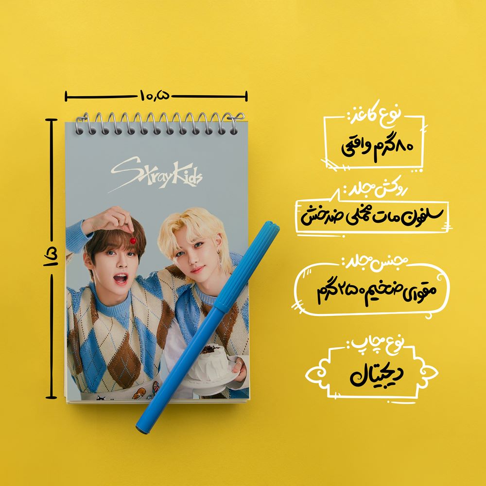 برند خندالو در زمینه تولید انواع دفاتر فانتزی و تحصیلی فعالیت میکند که به دلیل جذابیت ظاهری و طرح های متنوع طرفداران زیادی دارد. دفتر یادداشت خندالو طرح مینهو و فلیکس گروه استری کیدز Stary Kids محصولی مناسب برای همه عاشقان لوازم التحریر است و همچنین همه کسانی که بنا به موقعیت تحصیل یا شغلشان با دفتر و نوشت افزار زیاد سر و کار دارند. در تولید دفتر یادداشت خندالو طرح مینهو و فلیکس گروه استری کیدز Stary Kids از نوع صحافی فنر مارپیچ استفاده شده که در این نوع صحافی برگهها به راحتی چرخیده و یا بیرون آورده می شوند. دفتر های خندالو دارای جلد انعطاف پذیر از جنس مقوای گلاسه 250 گرم با روکش سلفون مات مخملی است که به شما امکان میدهد از دفتر خود بدون اینکه نگرانی از شکستن یا خراب شدن جلد را داشته باشید استفاده کنید و همچنین در این دفاتر از کاغذ 80 گرم با کیفیت استفاده شده که باعث میشود هنگام نوشتن به خوبی جوهر قلم بر روی صفحه نشسته و از خط خوردگیها جلوگیری کند. دفتر یادداشت خندالو با جنس و دوام مناسب، برگه های کاملاً سفید و خطوط طوسی دقیق را داراست که انسان را به نوشتن منظم و زیبا ترغیب میکند. طراحی کاملاً مناسب این دفاتر، به همراه کیفیت بالا، از آن یک محصول مورد علاقه و قابل اعتماد برای همه مقاطع تحصیلی میسازد. دفتر یادداشت خندالو طرح مینهو و فلیکس گروه استری کیدز Stary Kids انتخابی هوشمندانه و مناسب برای افرادی است که به دنبال دفتری با کیفیت و کاربرد عالی هستند. این دفتر، همراه خوبی برای شما در تمام مراحل تحصیل و کار خواهد بود و تجربهای لذتبخش از نوشتن و آموختن را به شما هدیه میدهد.