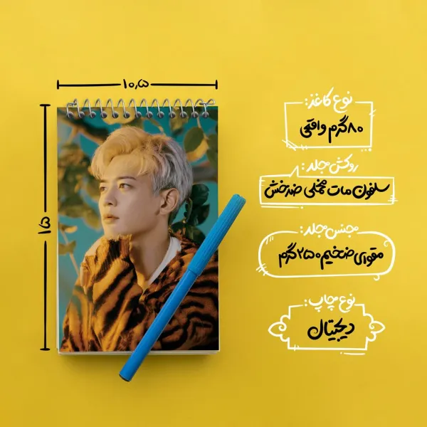 برند خندالو در زمینه تولید انواع دفاتر فانتزی و تحصیلی فعالیت میکند که به دلیل جذابیت ظاهری و طرح های متنوع طرفداران زیادی دارد. دفتر یادداشت خندالو طرح مینهو گروه شاینی Shinee محصولی مناسب برای همه عاشقان لوازم التحریر است و همچنین همه کسانی که بنا به موقعیت تحصیل یا شغلشان با دفتر و نوشت افزار زیاد سر و کار دارند. در تولید دفتر یادداشت خندالو طرح مینهو گروه شاینی Shinee از نوع صحافی فنر مارپیچ استفاده شده که در این نوع صحافی برگهها به راحتی چرخیده و یا بیرون آورده می شوند. دفتر های خندالو دارای جلد انعطاف پذیر از جنس مقوای گلاسه 250 گرم با روکش سلفون مات مخملی است که به شما امکان میدهد از دفتر خود بدون اینکه نگرانی از شکستن یا خراب شدن جلد را داشته باشید استفاده کنید و همچنین در این دفاتر از کاغذ 80 گرم با کیفیت استفاده شده که باعث میشود هنگام نوشتن به خوبی جوهر قلم بر روی صفحه نشسته و از خط خوردگیها جلوگیری کند. دفتر یادداشت خندالو با جنس و دوام مناسب، برگه های کاملاً سفید و خطوط طوسی دقیق را داراست که انسان را به نوشتن منظم و زیبا ترغیب میکند. طراحی کاملاً مناسب این دفاتر، به همراه کیفیت بالا، از آن یک محصول مورد علاقه و قابل اعتماد برای همه مقاطع تحصیلی میسازد. دفتر یادداشت خندالو طرح مینهو گروه شاینی Shinee انتخابی هوشمندانه و مناسب برای افرادی است که به دنبال دفتری با کیفیت و کاربرد عالی هستند. این دفتر، همراه خوبی برای شما در تمام مراحل تحصیل و کار خواهد بود و تجربهای لذتبخش از نوشتن و آموختن را به شما هدیه میدهد.
