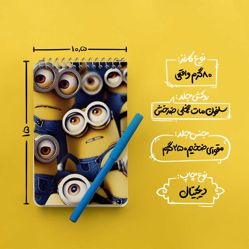 برند خندالو در زمینه تولید انواع دفاتر فانتزی و تحصیلی فعالیت میکند که به دلیل جذابیت ظاهری و طرح های متنوع طرفداران زیادی دارد. دفتر یادداشت خندالو طرح مینیون ها (Minions) محصولی مناسب برای همه عاشقان لوازم التحریر است و همچنین همه کسانی که بنا به موقعیت تحصیل یا شغلشان با دفتر و نوشت افزار زیاد سر و کار دارند. در تولید دفتر یادداشت خندالو طرح مینیون ها (Minions) از نوع صحافی فنر مارپیچ استفاده شده که در این نوع صحافی برگه‌ها به راحتی چرخیده و یا بیرون آورده می شوند.