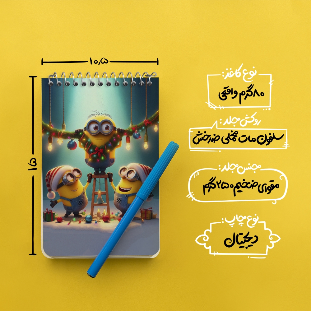 برند خندالو در زمینه تولید انواع دفاتر فانتزی و تحصیلی فعالیت میکند که به دلیل جذابیت ظاهری و طرح های متنوع طرفداران زیادی دارد. دفتر یادداشت خندالو طرح مینیون ها (Minions) محصولی مناسب برای همه عاشقان لوازم التحریر است و همچنین همه کسانی که بنا به موقعیت تحصیل یا شغلشان با دفتر و نوشت افزار زیاد سر و کار دارند. در تولید دفتر یادداشت خندالو طرح مینیون ها (Minions) از نوع صحافی فنر مارپیچ استفاده شده که در این نوع صحافی برگه‌ها به راحتی چرخیده و یا بیرون آورده می شوند.