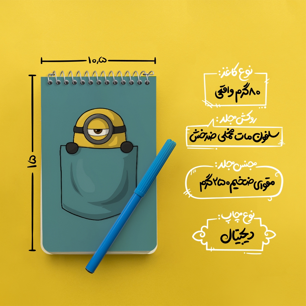 برند خندالو در زمینه تولید انواع دفاتر فانتزی و تحصیلی فعالیت میکند که به دلیل جذابیت ظاهری و طرح های متنوع طرفداران زیادی دارد. دفتر یادداشت خندالو طرح مینیون ها (Minions) محصولی مناسب برای همه عاشقان لوازم التحریر است و همچنین همه کسانی که بنا به موقعیت تحصیل یا شغلشان با دفتر و نوشت افزار زیاد سر و کار دارند. در تولید دفتر یادداشت خندالو طرح مینیون ها (Minions) از نوع صحافی فنر مارپیچ استفاده شده که در این نوع صحافی برگه‌ها به راحتی چرخیده و یا بیرون آورده می شوند.