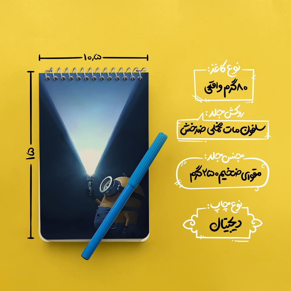 برند خندالو در زمینه تولید انواع دفاتر فانتزی و تحصیلی فعالیت میکند که به دلیل جذابیت ظاهری و طرح های متنوع طرفداران زیادی دارد. دفتر یادداشت خندالو طرح مینیون ها (Minions) محصولی مناسب برای همه عاشقان لوازم التحریر است و همچنین همه کسانی که بنا به موقعیت تحصیل یا شغلشان با دفتر و نوشت افزار زیاد سر و کار دارند. در تولید دفتر یادداشت خندالو طرح مینیون ها (Minions) از نوع صحافی فنر مارپیچ استفاده شده که در این نوع صحافی برگه‌ها به راحتی چرخیده و یا بیرون آورده می شوند.