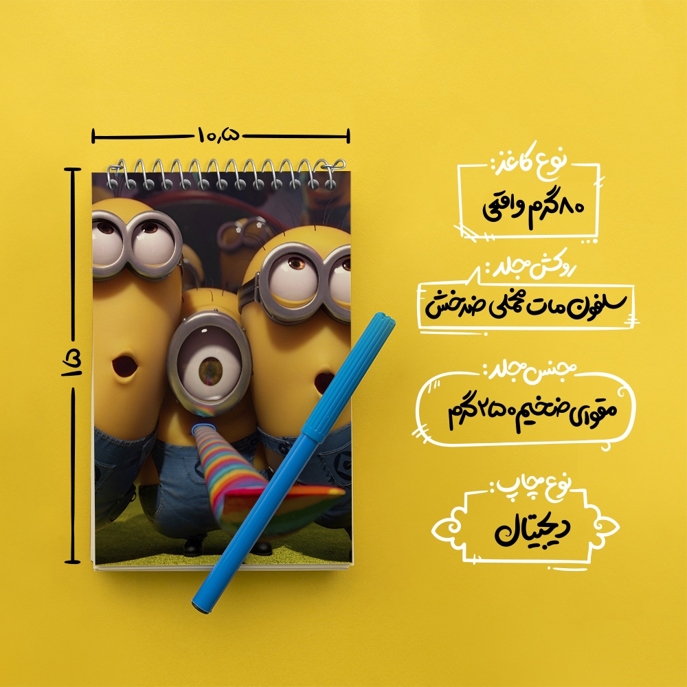 برند خندالو در زمینه تولید انواع دفاتر فانتزی و تحصیلی فعالیت میکند که به دلیل جذابیت ظاهری و طرح های متنوع طرفداران زیادی دارد. دفتر یادداشت خندالو طرح مینیون ها (Minions) محصولی مناسب برای همه عاشقان لوازم التحریر است و همچنین همه کسانی که بنا به موقعیت تحصیل یا شغلشان با دفتر و نوشت افزار زیاد سر و کار دارند. در تولید دفتر یادداشت خندالو طرح مینیون ها (Minions) از نوع صحافی فنر مارپیچ استفاده شده که در این نوع صحافی برگهها به راحتی چرخیده و یا بیرون آورده می شوند. دفتر های خندالو دارای جلد انعطاف پذیر از جنس مقوای گلاسه 250 گرم با روکش سلفون مات مخملی است که به شما امکان میدهد از دفتر خود بدون اینکه نگرانی از شکستن یا خراب شدن جلد را داشته باشید استفاده کنید و همچنین در این دفاتر از کاغذ 80 گرم با کیفیت استفاده شده که باعث میشود هنگام نوشتن به خوبی جوهر قلم بر روی صفحه نشسته و از خط خوردگیها جلوگیری کند. دفتر یادداشت خندالو با جنس و دوام مناسب، برگه های کاملاً سفید و خطوط طوسی دقیق را داراست که انسان را به نوشتن منظم و زیبا ترغیب میکند. طراحی کاملاً مناسب این دفاتر، به همراه کیفیت بالا، از آن یک محصول مورد علاقه و قابل اعتماد برای همه مقاطع تحصیلی میسازد. دفتر یادداشت خندالو طرح مینیون ها (Minions) انتخابی هوشمندانه و مناسب برای افرادی است که به دنبال دفتری با کیفیت و کاربرد عالی هستند. این دفتر، همراه خوبی برای شما در تمام مراحل تحصیل و کار خواهد بود و تجربهای لذتبخش از نوشتن و آموختن را به شما هدیه میدهد.