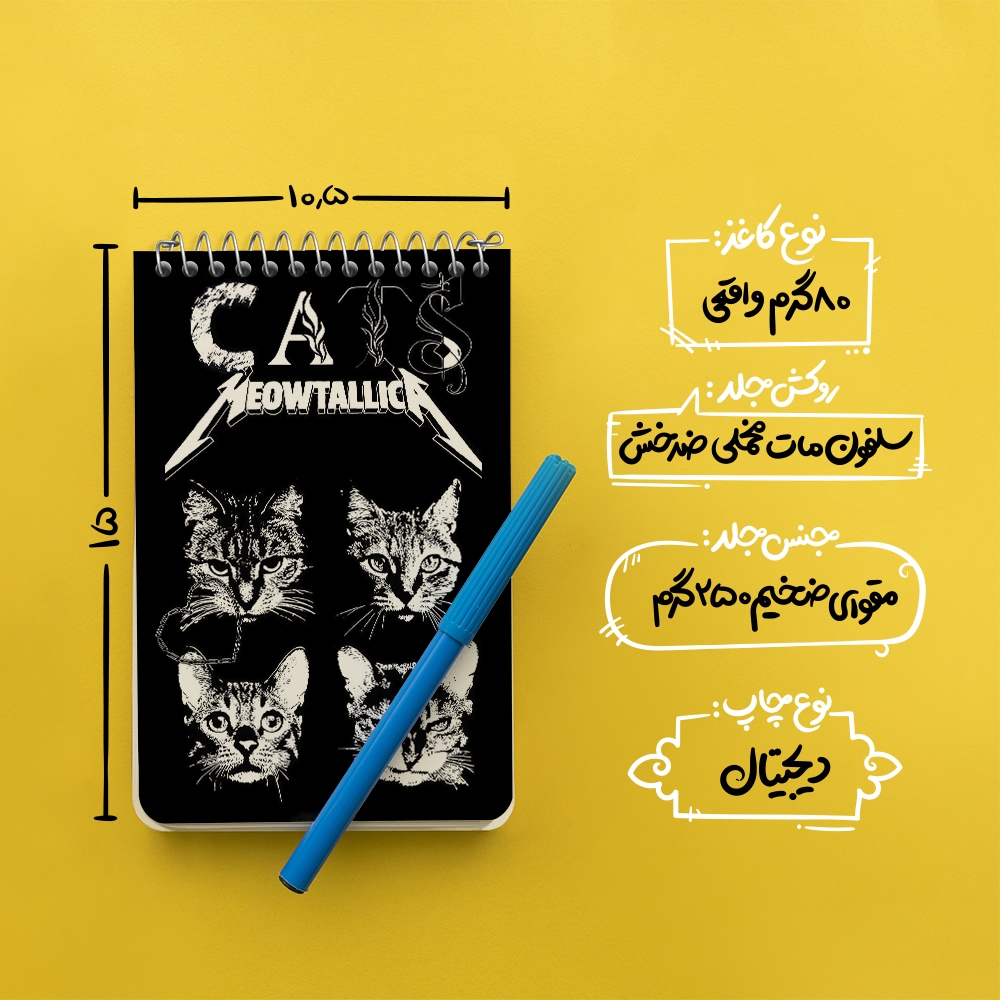 برند خندالو در زمینه تولید انواع دفاتر فانتزی و تحصیلی فعالیت میکند که به دلیل جذابیت ظاهری و طرح های متنوع طرفداران زیادی دارد. دفتر یادداشت خندالو طرح میوتالیکا (Meowtallica) محصولی مناسب برای همه عاشقان لوازم التحریر است و همچنین همه کسانی که بنا به موقعیت تحصیل یا شغلشان با دفتر و نوشت افزار زیاد سر و کار دارند. در تولید دفتر یادداشت خندالو طرح میوتالیکا (Meowtallica) از نوع صحافی فنر مارپیچ استفاده شده که در این نوع صحافی برگهها به راحتی چرخیده و یا بیرون آورده می شوند. دفتر های خندالو دارای جلد انعطاف پذیر از جنس مقوای گلاسه 250 گرم با روکش سلفون مات مخملی است که به شما امکان میدهد از دفتر خود بدون اینکه نگرانی از شکستن یا خراب شدن جلد را داشته باشید استفاده کنید و همچنین در این دفاتر از کاغذ 80 گرم با کیفیت استفاده شده که باعث میشود هنگام نوشتن به خوبی جوهر قلم بر روی صفحه نشسته و از خط خوردگیها جلوگیری کند. دفتر یادداشت خندالو با جنس و دوام مناسب، برگه های کاملاً سفید و خطوط طوسی دقیق را داراست که انسان را به نوشتن منظم و زیبا ترغیب میکند. طراحی کاملاً مناسب این دفاتر، به همراه کیفیت بالا، از آن یک محصول مورد علاقه و قابل اعتماد برای همه مقاطع تحصیلی میسازد. دفتر یادداشت خندالو طرح میوتالیکا (Meowtallica) انتخابی هوشمندانه و مناسب برای افرادی است که به دنبال دفتری با کیفیت و کاربرد عالی هستند. این دفتر، همراه خوبی برای شما در تمام مراحل تحصیل و کار خواهد بود و تجربهای لذتبخش از نوشتن و آموختن را به شما هدیه میدهد.