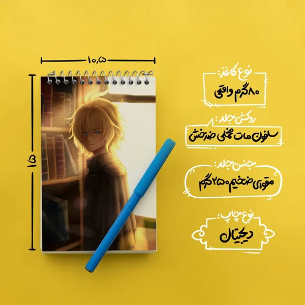 برند خندالو در زمینه تولید انواع دفاتر فانتزی و تحصیلی فعالیت میکند که به دلیل جذابیت ظاهری و طرح های متنوع طرفداران زیادی دارد. دفتر یادداشت خندالو طرح میکائیل هیاکویا انیمه اسرافیل پایانی محصولی مناسب برای همه عاشقان لوازم التحریر است و همچنین همه کسانی که بنا به موقعیت تحصیل یا شغلشان با دفتر و نوشت افزار زیاد سر و کار دارند. در تولید دفتر یادداشت خندالو طرح میکائیل هیاکویا انیمه اسرافیل پایانی از نوع صحافی فنر مارپیچ استفاده شده که در این نوع صحافی برگهها به راحتی چرخیده و یا بیرون آورده می شوند. دفتر های خندالو دارای جلد انعطاف پذیر از جنس مقوای گلاسه 250 گرم با روکش سلفون مات مخملی است که به شما امکان میدهد از دفتر خود بدون اینکه نگرانی از شکستن یا خراب شدن جلد را داشته باشید استفاده کنید و همچنین در این دفاتر از کاغذ 80 گرم با کیفیت استفاده شده که باعث میشود هنگام نوشتن به خوبی جوهر قلم بر روی صفحه نشسته و از خط خوردگیها جلوگیری کند. دفتر یادداشت خندالو با جنس و دوام مناسب، برگه های کاملاً سفید و خطوط طوسی دقیق را داراست که انسان را به نوشتن منظم و زیبا ترغیب میکند. طراحی کاملاً مناسب این دفاتر، به همراه کیفیت بالا، از آن یک محصول مورد علاقه و قابل اعتماد برای همه مقاطع تحصیلی میسازد. دفتر یادداشت خندالو طرح میکائیل هیاکویا انیمه اسرافیل پایانی انتخابی هوشمندانه و مناسب برای افرادی است که به دنبال دفتری با کیفیت و کاربرد عالی هستند. این دفتر، همراه خوبی برای شما در تمام مراحل تحصیل و کار خواهد بود و تجربهای لذتبخش از نوشتن و آموختن را به شما هدیه میدهد.