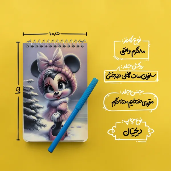 برند خندالو در زمینه تولید انواع دفاتر فانتزی و تحصیلی فعالیت میکند که به دلیل جذابیت ظاهری و طرح های متنوع طرفداران زیادی دارد. دفتر یادداشت خندالو طرح میکی موس کیوت محصولی مناسب برای همه عاشقان لوازم التحریر است و همچنین همه کسانی که بنا به موقعیت تحصیل یا شغلشان با دفتر و نوشت افزار زیاد سر و کار دارند. در تولید دفتر یادداشت خندالو طرح میکی موس کیوت از نوع صحافی فنر مارپیچ استفاده شده که در این نوع صحافی برگهها به راحتی چرخیده و یا بیرون آورده می شوند. دفتر های خندالو دارای جلد انعطاف پذیر از جنس مقوای گلاسه 250 گرم با روکش سلفون مات مخملی است که به شما امکان میدهد از دفتر خود بدون اینکه نگرانی از شکستن یا خراب شدن جلد را داشته باشید استفاده کنید و همچنین در این دفاتر از کاغذ 80 گرم با کیفیت استفاده شده که باعث میشود هنگام نوشتن به خوبی جوهر قلم بر روی صفحه نشسته و از خط خوردگیها جلوگیری کند. دفتر یادداشت خندالو با جنس و دوام مناسب، برگه های کاملاً سفید و خطوط طوسی دقیق را داراست که انسان را به نوشتن منظم و زیبا ترغیب میکند. طراحی کاملاً مناسب این دفاتر، به همراه کیفیت بالا، از آن یک محصول مورد علاقه و قابل اعتماد برای همه مقاطع تحصیلی میسازد. دفتر یادداشت خندالو طرح میکی موس کیوت انتخابی هوشمندانه و مناسب برای افرادی است که به دنبال دفتری با کیفیت و کاربرد عالی هستند. این دفتر، همراه خوبی برای شما در تمام مراحل تحصیل و کار خواهد بود و تجربهای لذتبخش از نوشتن و آموختن را به شما هدیه میدهد.