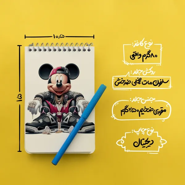 برند خندالو در زمینه تولید انواع دفاتر فانتزی و تحصیلی فعالیت میکند که به دلیل جذابیت ظاهری و طرح های متنوع طرفداران زیادی دارد. دفتر یادداشت خندالو طرح میکی موس محصولی مناسب برای همه عاشقان لوازم التحریر است و همچنین همه کسانی که بنا به موقعیت تحصیل یا شغلشان با دفتر و نوشت افزار زیاد سر و کار دارند. در تولید دفتر یادداشت خندالو طرح میکی موس از نوع صحافی فنر مارپیچ استفاده شده که در این نوع صحافی برگه‌ها به راحتی چرخیده و یا بیرون آورده می شوند.
